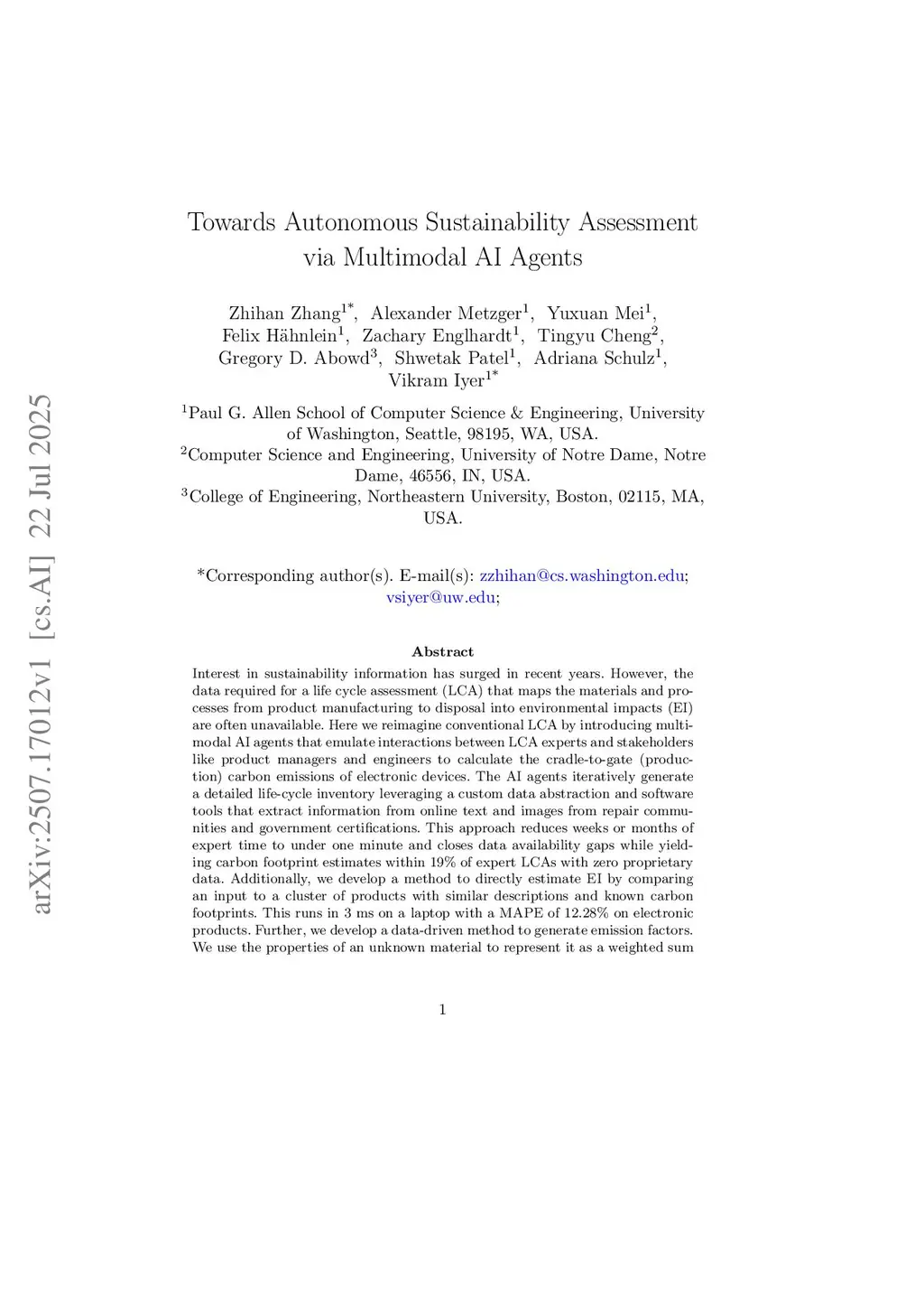 Towards Autonomous Sustainability Assessment via Multimodal AI Agents