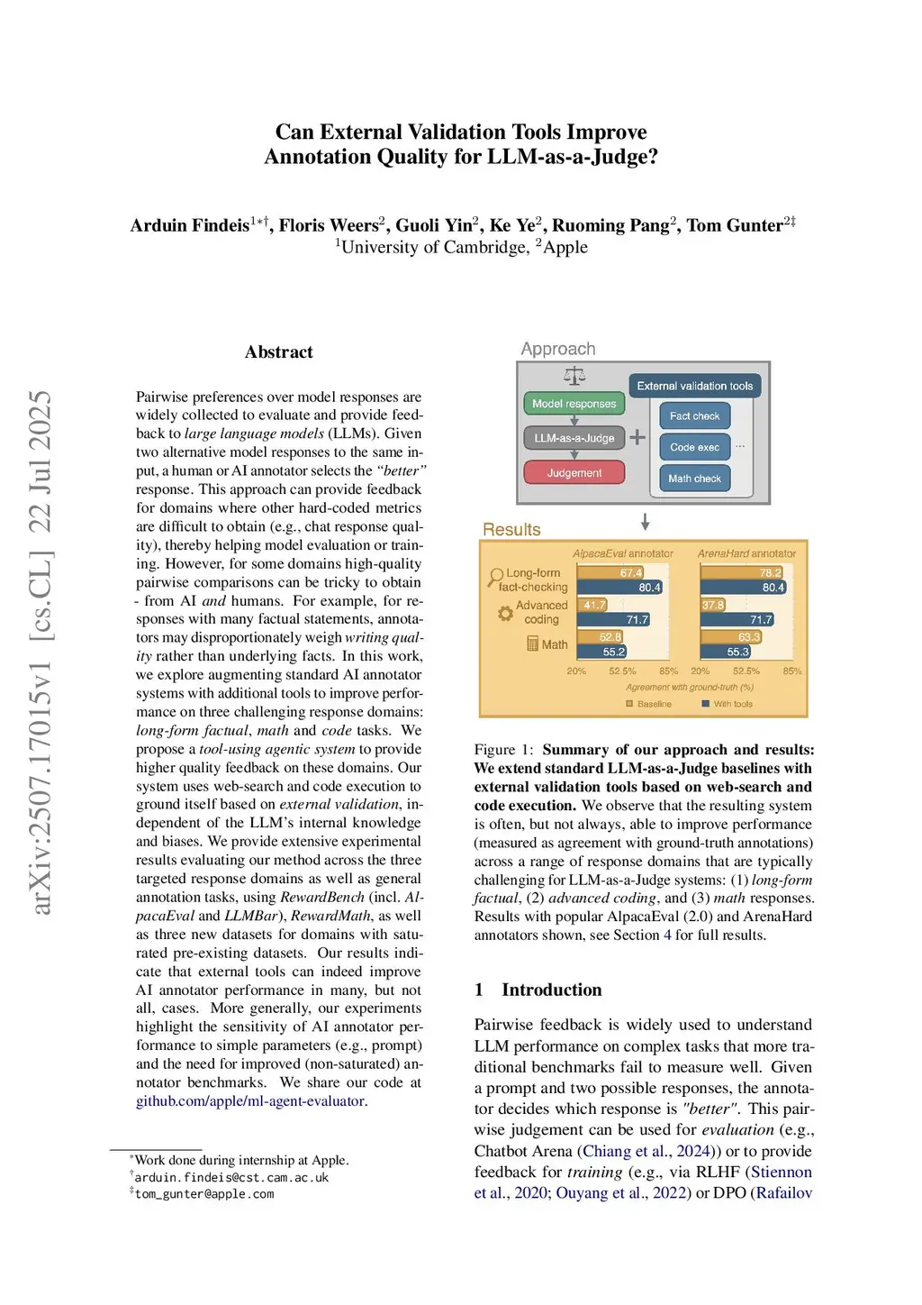 Can External Validation Tools Improve Annotation Quality for LLM-as-a-Judge?