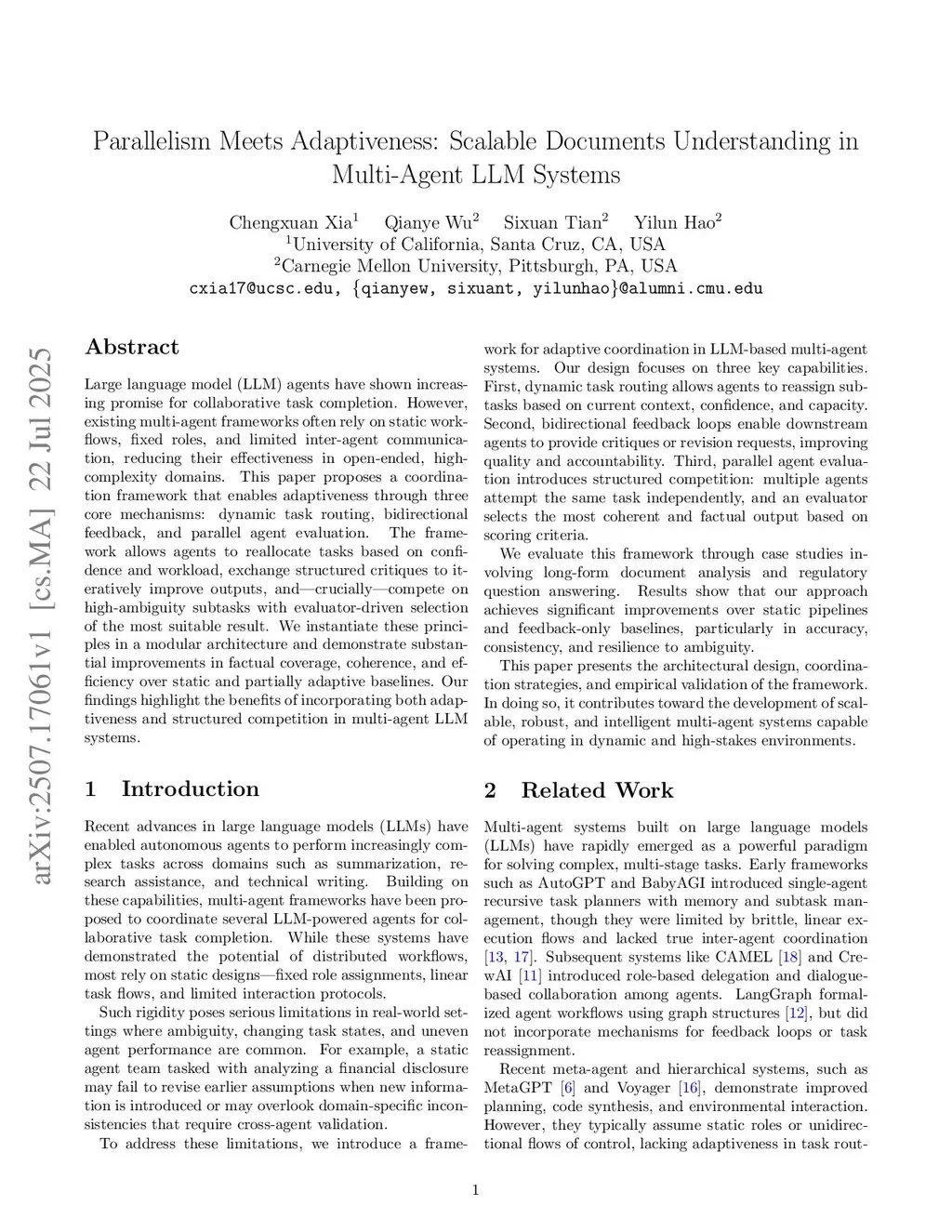 Parallelism Meets Adaptiveness: Scalable Documents Understanding in Multi-Agent LLM Systems