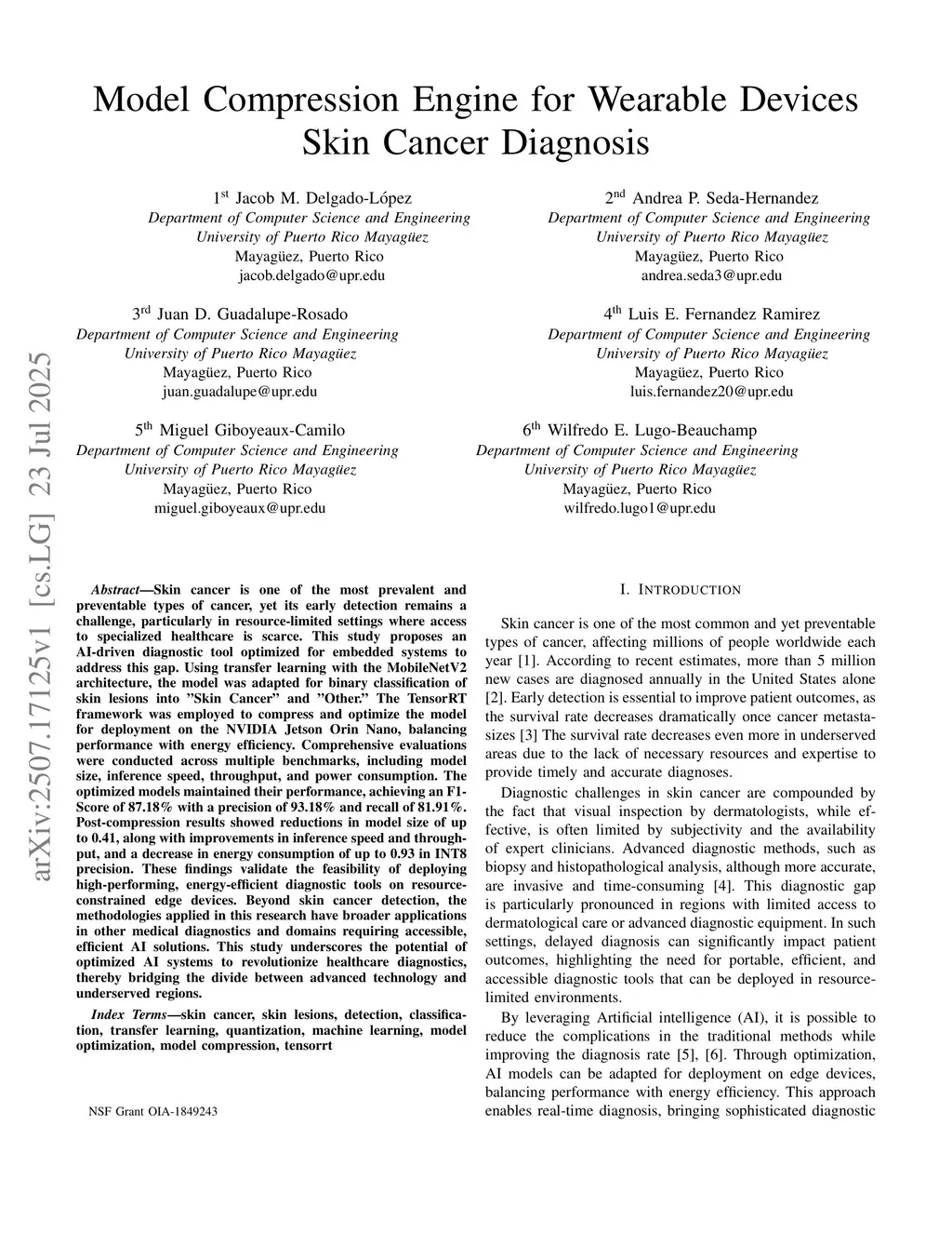 Model Compression Engine for Wearable Devices Skin Cancer Diagnosis