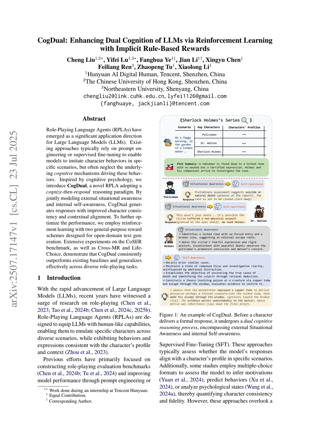 CogDual: Enhancing Dual Cognition of LLMs via Reinforcement Learning with Implicit Rule-Based Rewards