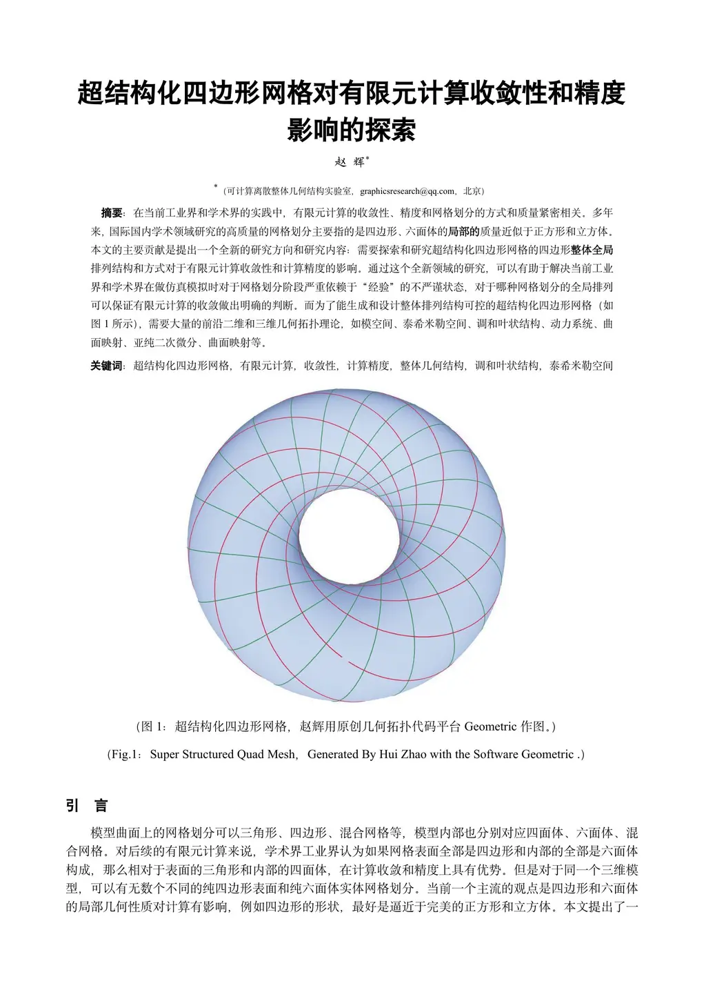 In the current practices of both industry and academia, the convergence and accuracy of finite element calculations are closely related to the methods and quality of mesh generation. For years, the research on high-quality mesh generation in the domestic academic field has mainly referred to the local quality of quadrilaterals and hexahedrons approximating that of squares and cubes. The main contribution of this paper is to propose a brand-new research direction and content: it is necessary to explore and study the influence of the overall global arrangement structure and pattern of super structured quadrilateral meshes on the convergence and calculation accuracy of finite element calculations. Through the research in this new field, it can help solve the non-rigorous state of serious reliance on "experience" in the mesh generation stage during simulation in the current industry and academia, and make clear judgments on which global arrangements of mesh generation can ensure the convergence of finite element calculations. In order to generate and design super-structured quadrilateral meshes with controllable overall arrangement structures, a large number of modern two-dimensional and three-dimensional geometric topology theories are required, such as moduli space, Teichmüller space, harmonic foliations, dynamical systems, surface mappings, meromorphic quadratic differentials, surface mappings, etc.
