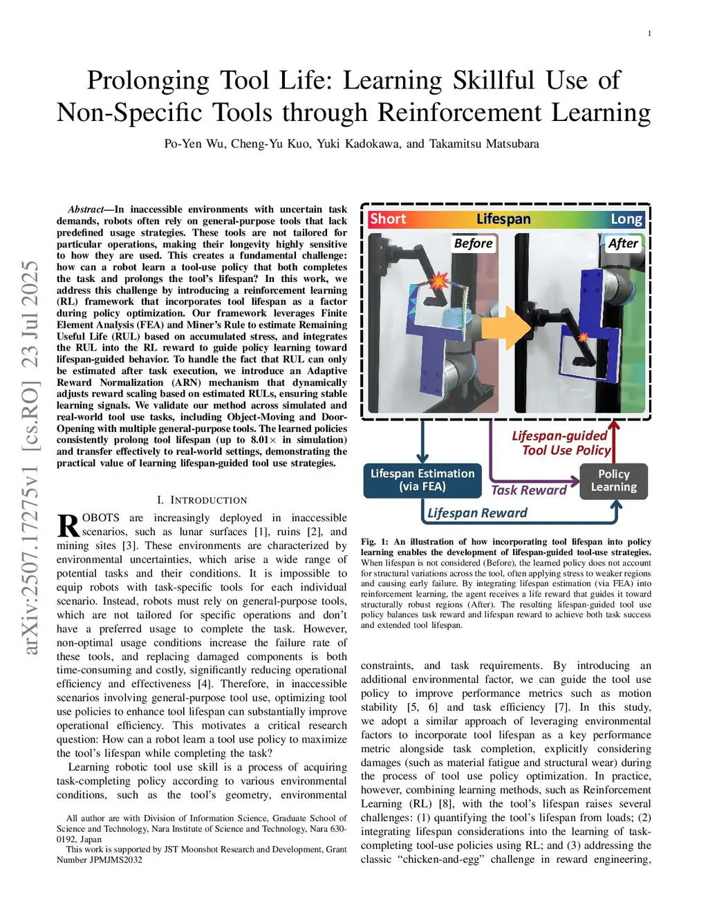 Prolonging Tool Life: Learning Skillful Use of General-purpose Tools through Lifespan-guided Reinforcement Learning