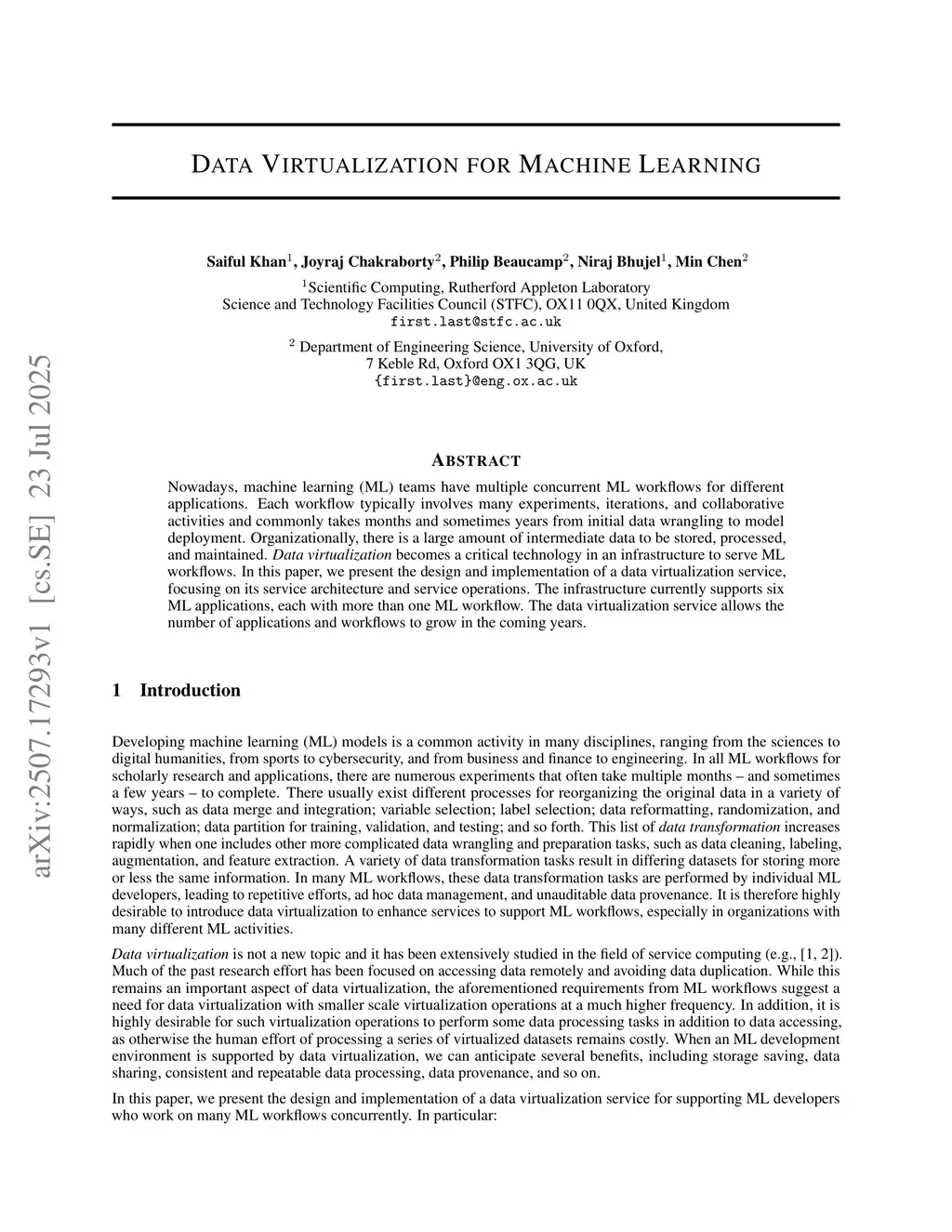 Data Virtualization for Machine Learning