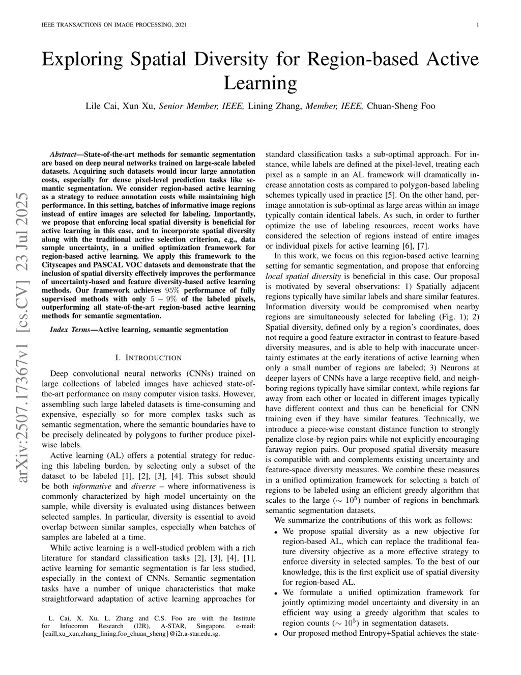 Exploring Spatial Diversity for Region-based Active Learning