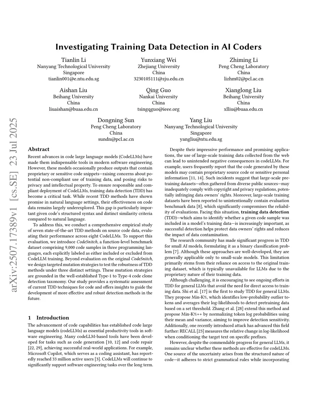 Investigating Training Data Detection in AI Coders