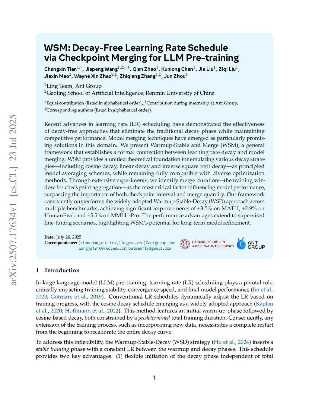 WSM: Decay-Free Learning Rate Schedule via Checkpoint Merging for LLM Pre-training