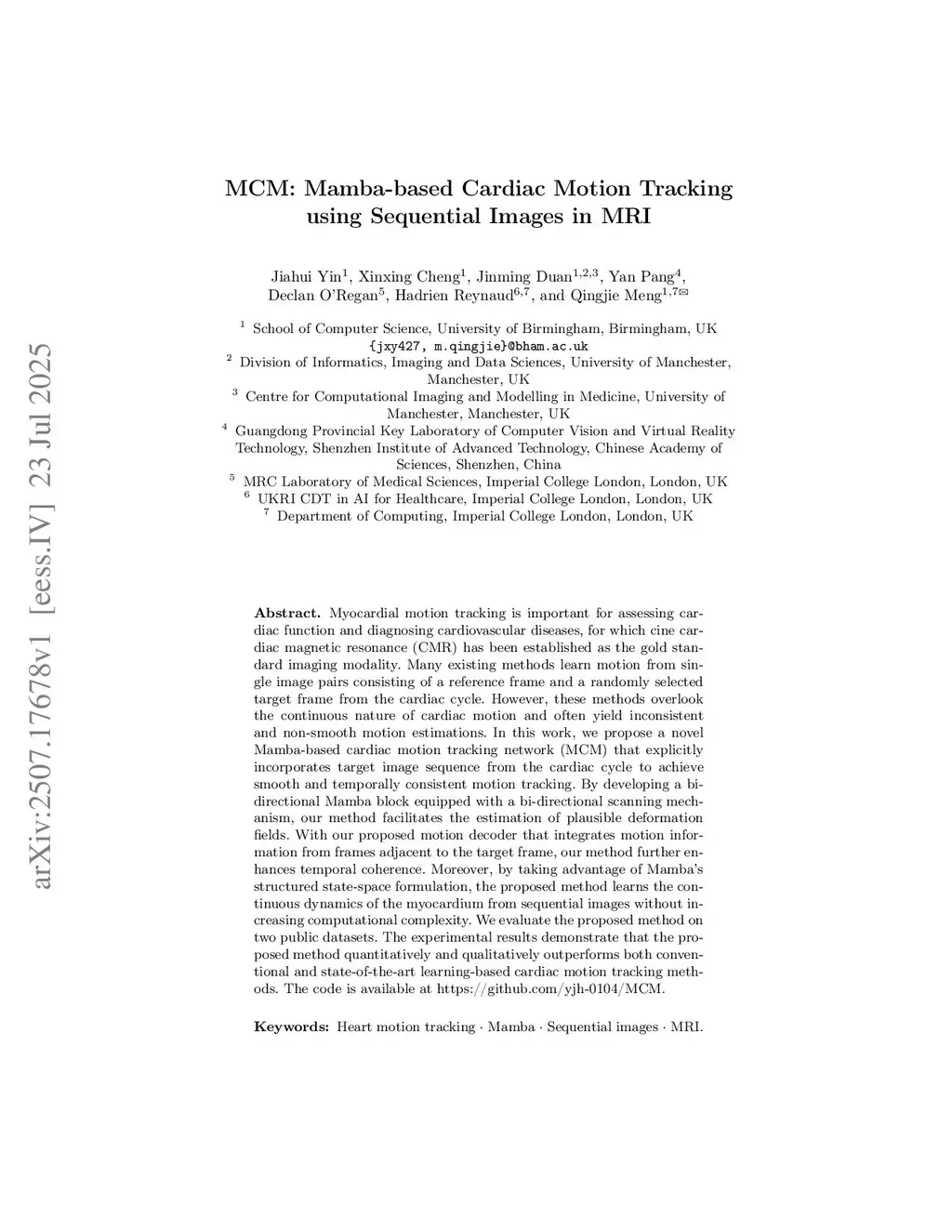 MCM: Mamba-based Cardiac Motion Tracking using Sequential Images in MRI