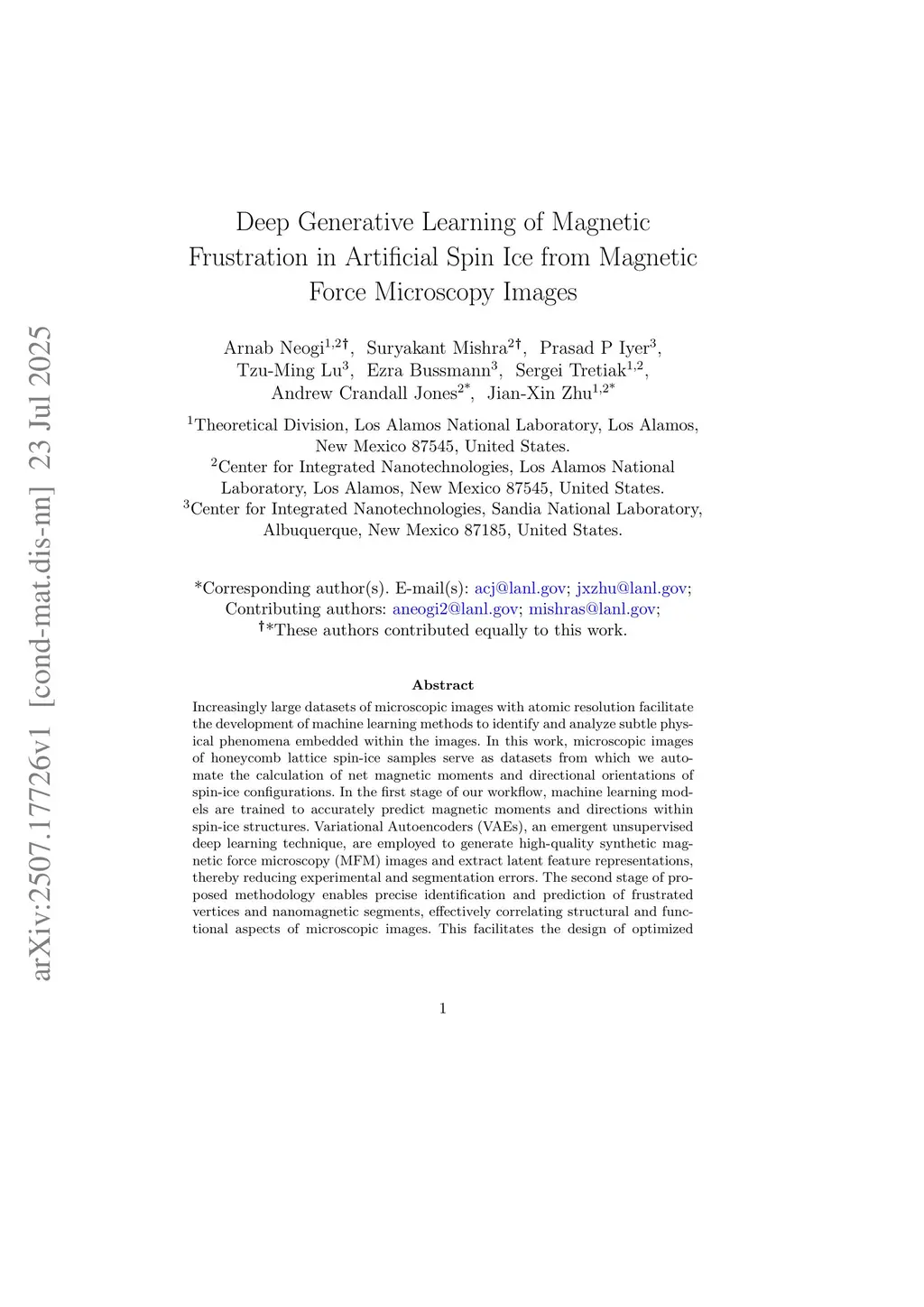 Increasingly large datasets of microscopic images with atomic resolution facilitate the development of machine learning methods to identify and analyze subtle physical phenomena embedded within the images. In this work, microscopic images of honeycomb lattice spin-ice samples serve as datasets from which we automate the calculation of net magnetic moments and directional orientations of spin-ice configurations. In the first stage of our workflow, machine learning models are trained to accurately predict magnetic moments and directions within spin-ice structures. Variational Autoencoders (VAEs), an emergent unsupervised deep learning technique, are employed to generate high-quality synthetic magnetic force microscopy (MFM) images and extract latent feature representations, thereby reducing experimental and segmentation errors. The second stage of proposed methodology enables precise identification and prediction of frustrated vertices and nanomagnetic segments, effectively correlating structural and functional aspects of microscopic images. This facilitates the design of optimized spin-ice configurations with controlled frustration patterns, enabling potential on-demand synthesis.