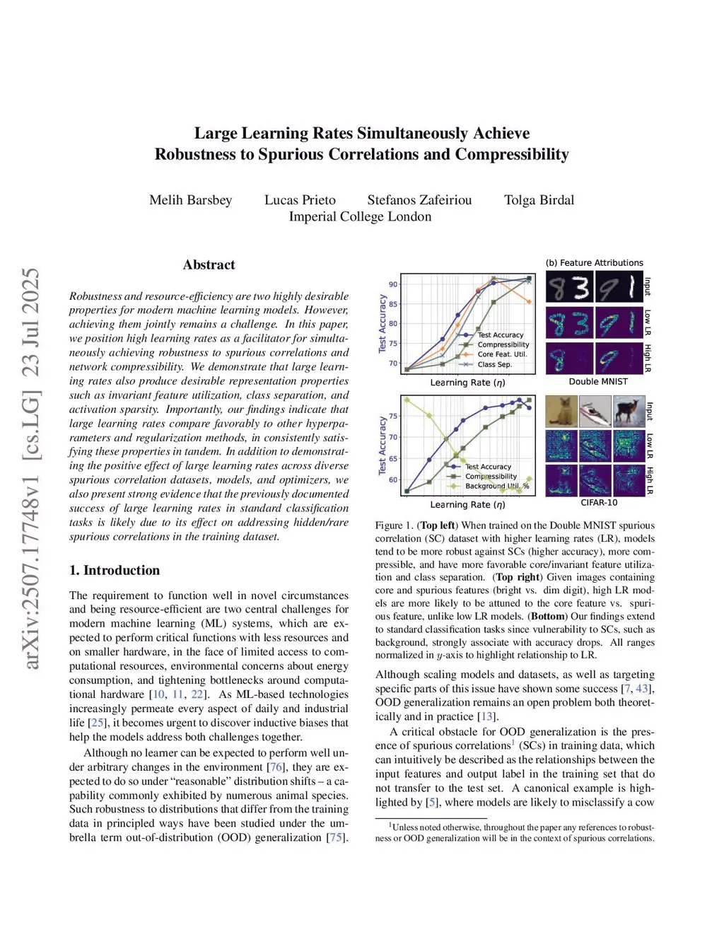 Large Learning Rates Simultaneously Achieve Robustness to Spurious Correlations and Compressibility