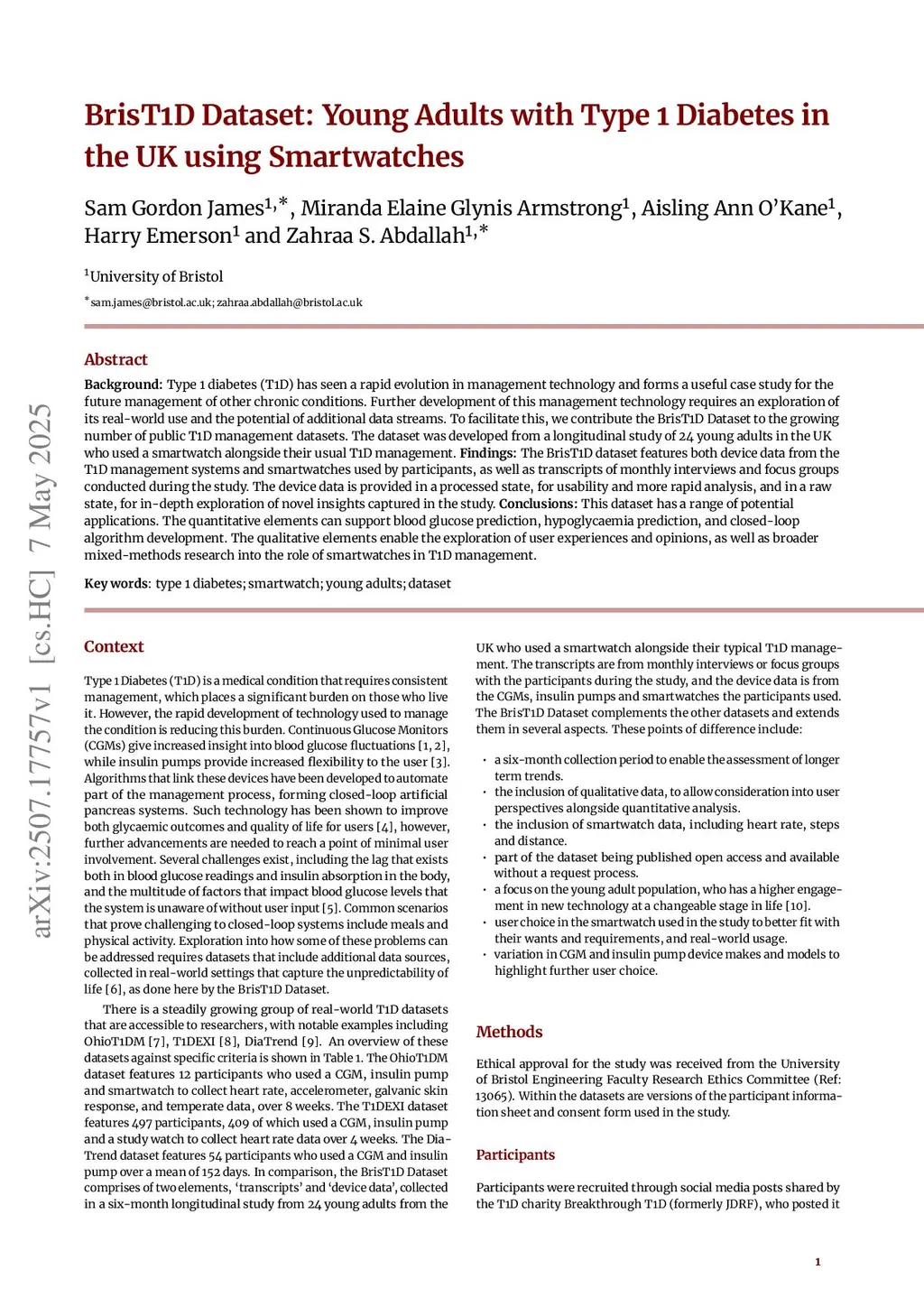 BrisT1D Dataset: Young Adults with Type 1 Diabetes in the UK using Smartwatches