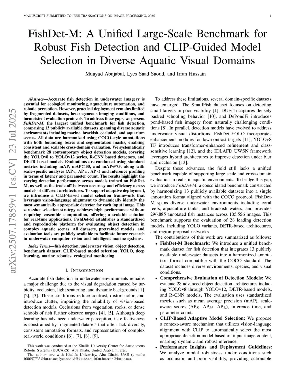 FishDet-M: A Unified Large-Scale Benchmark for Robust Fish Detection and CLIP-Guided Model Selection in Diverse Aquatic Visual Domains