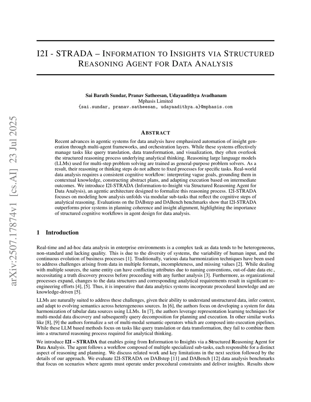 I2I-STRADA -- Information to Insights via Structured Reasoning Agent for Data Analysis