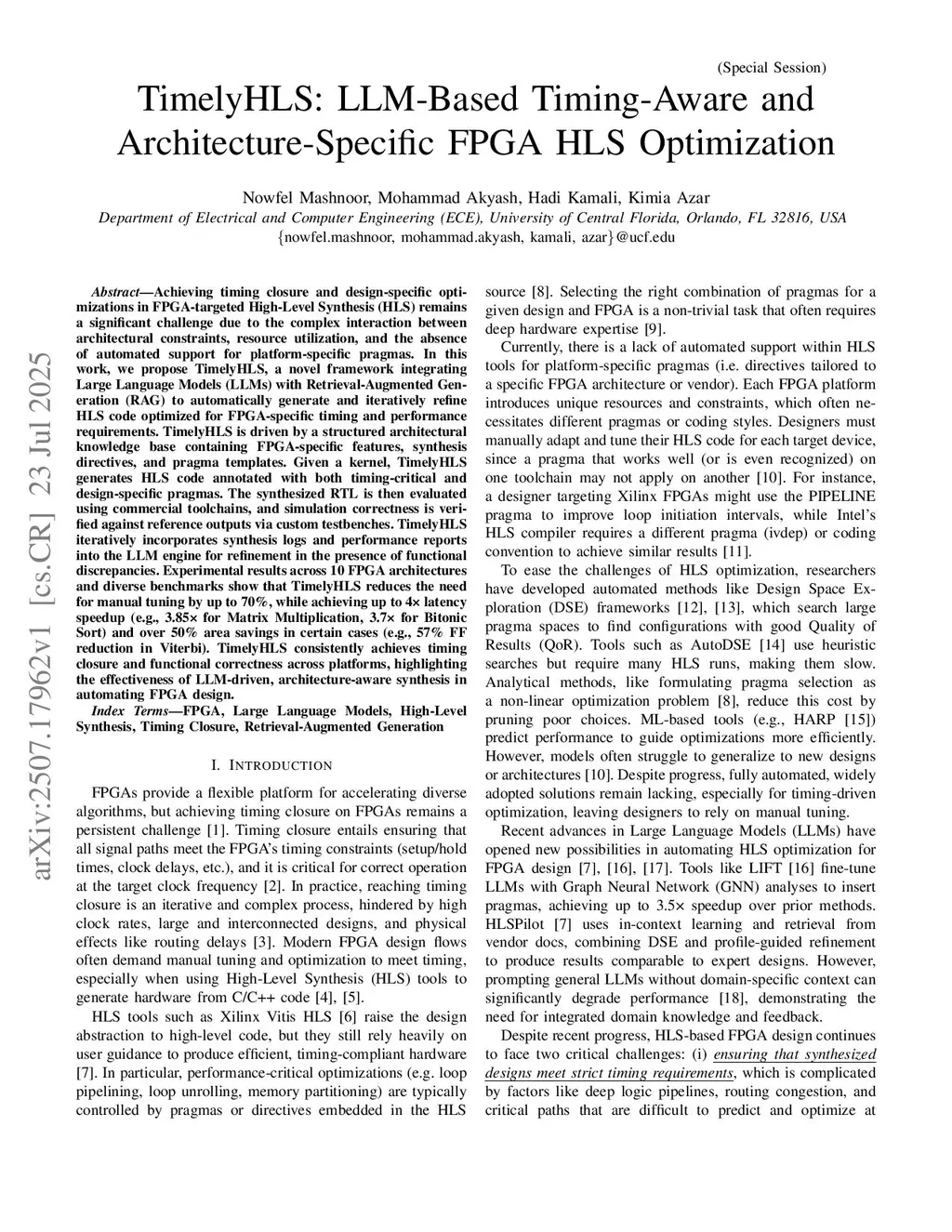 Achieving timing closure and design-specific optimizations in FPGA-targeted High-Level Synthesis (HLS) remains a significant challenge due to the complex interaction between architectural constraints, resource utilization, and the absence of automated support for platform-specific pragmas. In this work, we propose TimelyHLS, a novel framework integrating Large Language Models (LLMs) with Retrieval-Augmented Generation (RAG) to automatically generate and iteratively refine HLS code optimized for FPGA-specific timing and performance requirements. TimelyHLS is driven by a structured architectural knowledge base containing FPGA-specific features, synthesis directives, and pragma templates. Given a kernel, TimelyHLS generates HLS code annotated with both timing-critical and design-specific pragmas. The synthesized RTL is then evaluated using commercial toolchains, and simulation correctness is verified against reference outputs via custom testbenches. TimelyHLS iteratively incorporates synthesis logs and performance reports into the LLM engine for refinement in the presence of functional discrepancies. Experimental results across 10 FPGA architectures and diverse benchmarks show that TimelyHLS reduces the need for manual tuning by up to 70%, while achieving up to 4x latency speedup (e.g., 3.85x for Matrix Multiplication, 3.7x for Bitonic Sort) and over 50% area savings in certain cases (e.g., 57% FF reduction in Viterbi). TimelyHLS consistently achieves timing closure and functional correctness across platforms, highlighting the effectiveness of LLM-driven, architecture-aware synthesis in automating FPGA design.