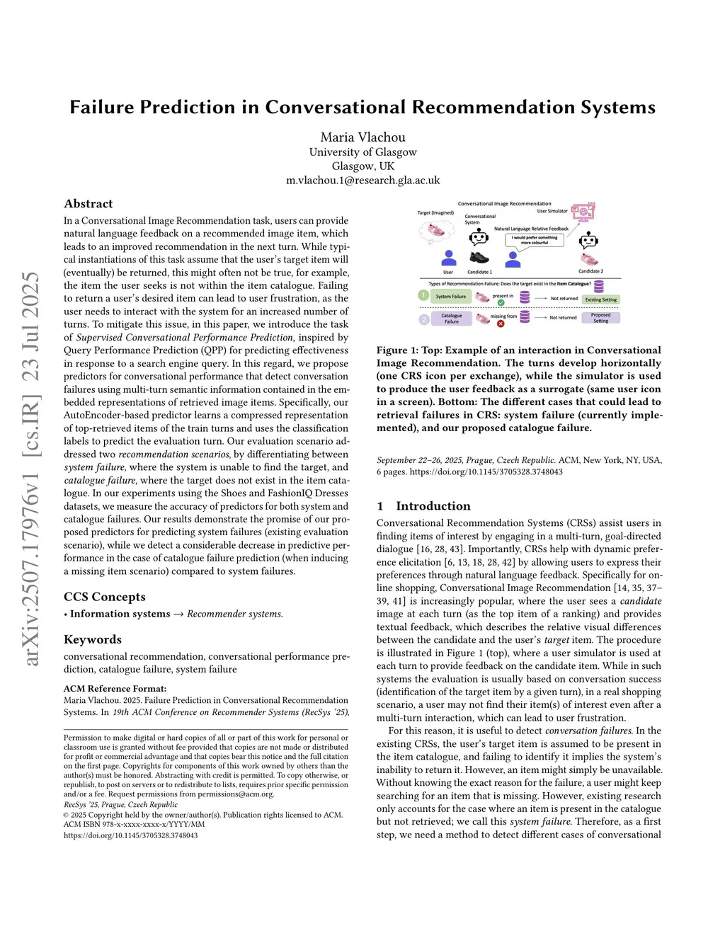 Failure Prediction in Conversational Recommendation Systems
