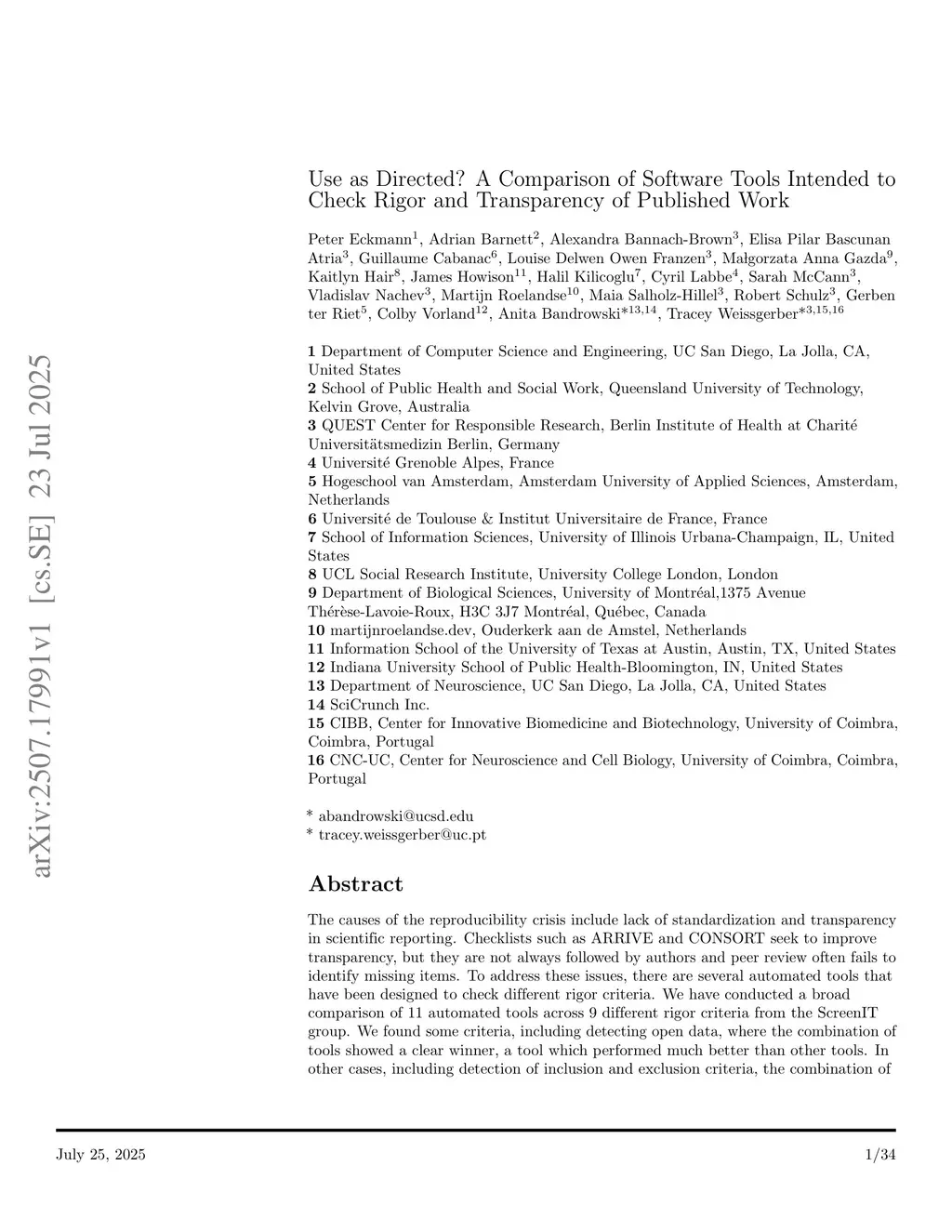 Use as Directed? A Comparison of Software Tools Intended to Check Rigor and Transparency of Published Work