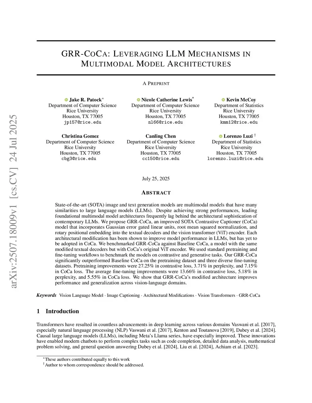 GRR-CoCa: Leveraging LLM Mechanisms in Multimodal Model Architectures