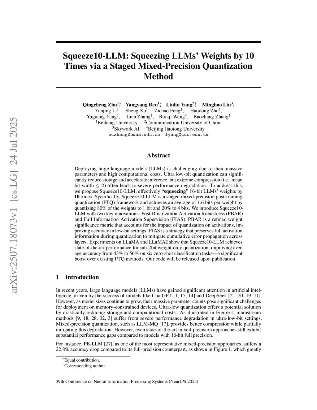 Squeeze10-LLM: Squeezing LLMs' Weights by 10 Times via a Staged Mixed-Precision Quantization Method
