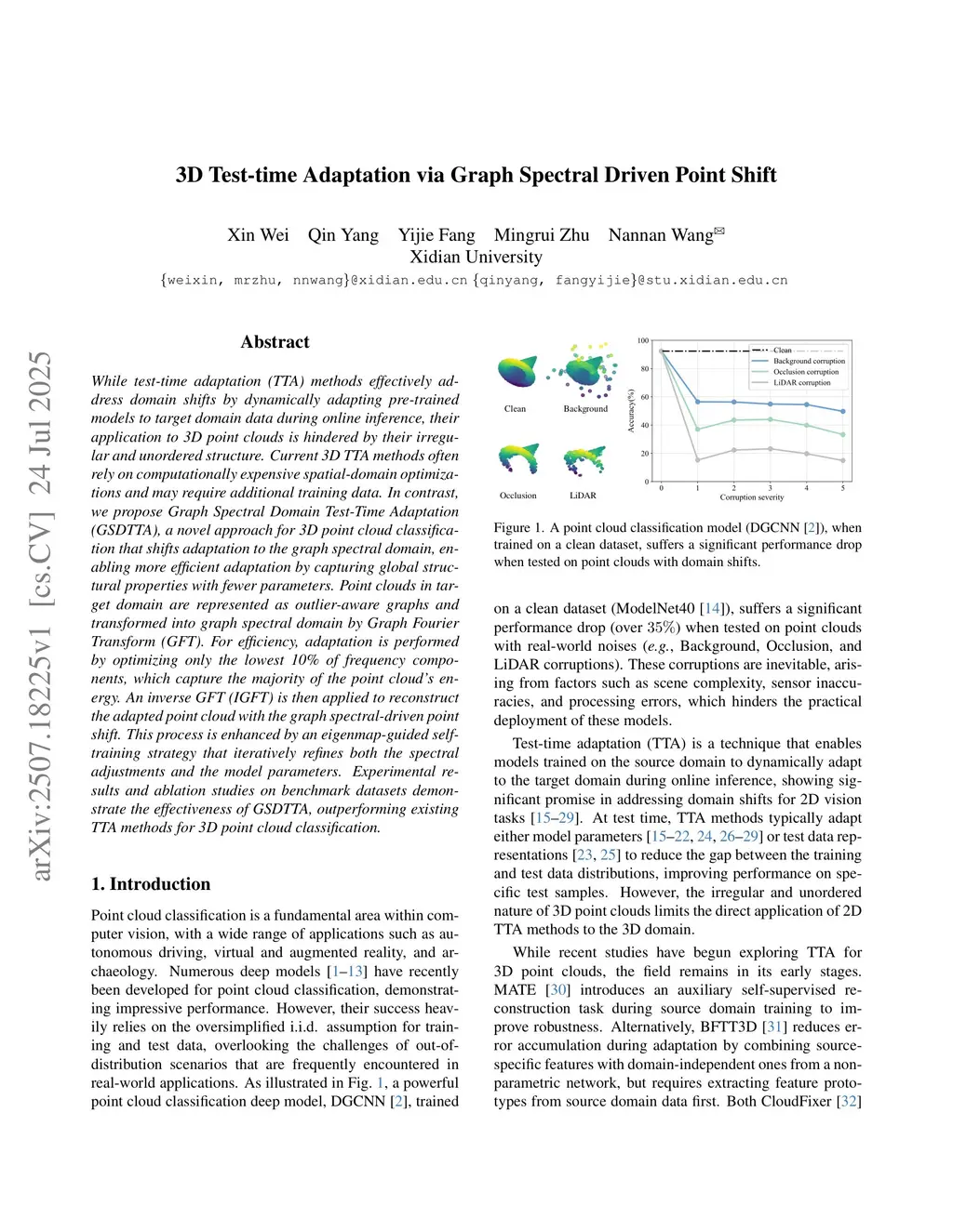 3D Test-time Adaptation via Graph Spectral Driven Point Shift