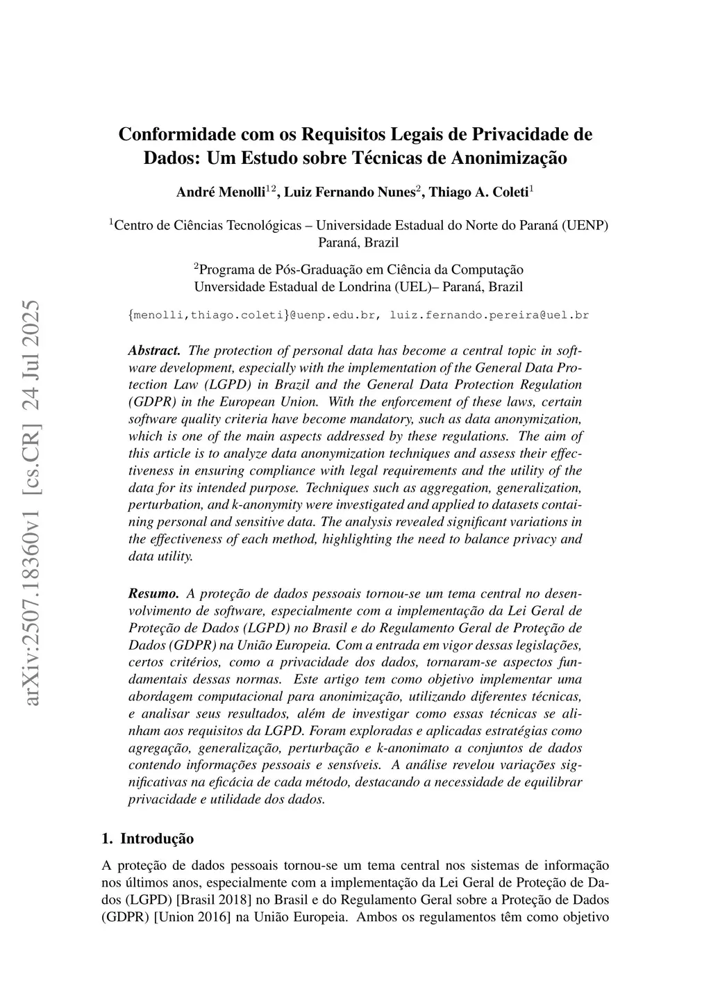 Conformidade com os Requisitos Legais de Privacidade de Dados: Um Estudo sobre Técnicas de Anonimização