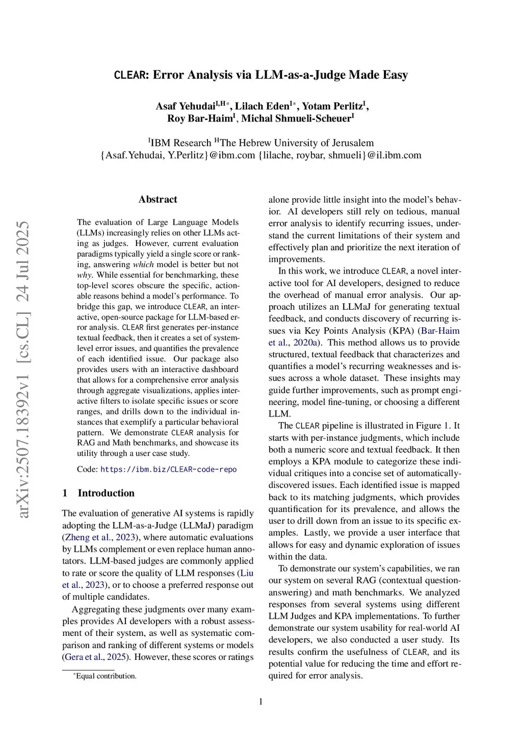 CLEAR: Error Analysis via LLM-as-a-Judge Made Easy