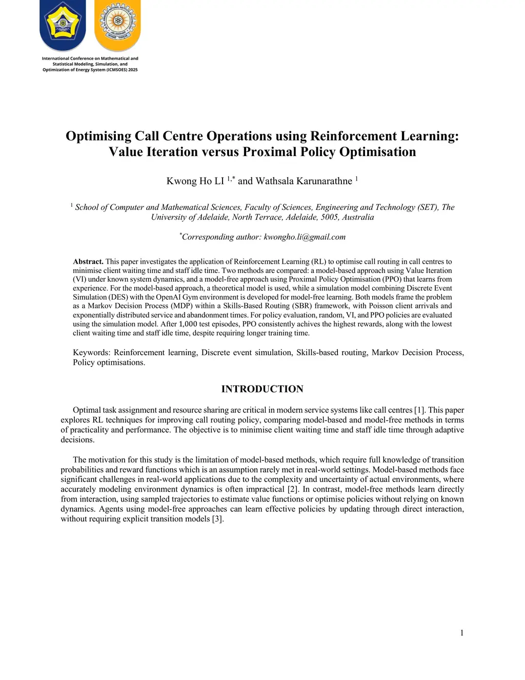 Optimising Call Centre Operations using Reinforcement Learning: Value Iteration versus Proximal Policy Optimisation