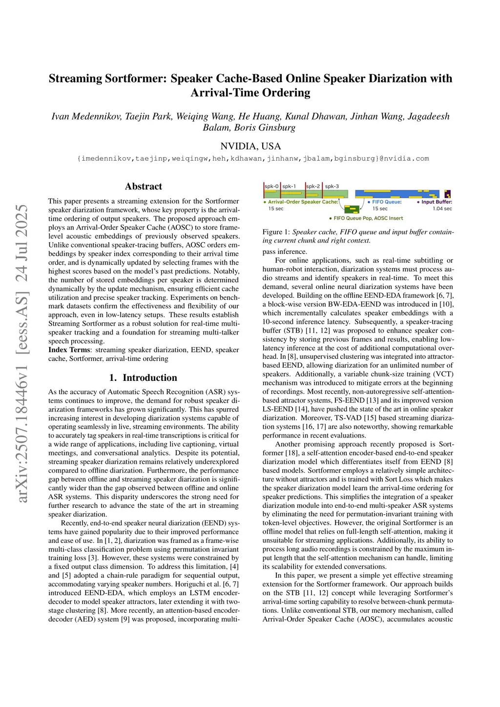 Streaming Sortformer: Speaker Cache-Based Online Speaker Diarization with Arrival-Time Ordering