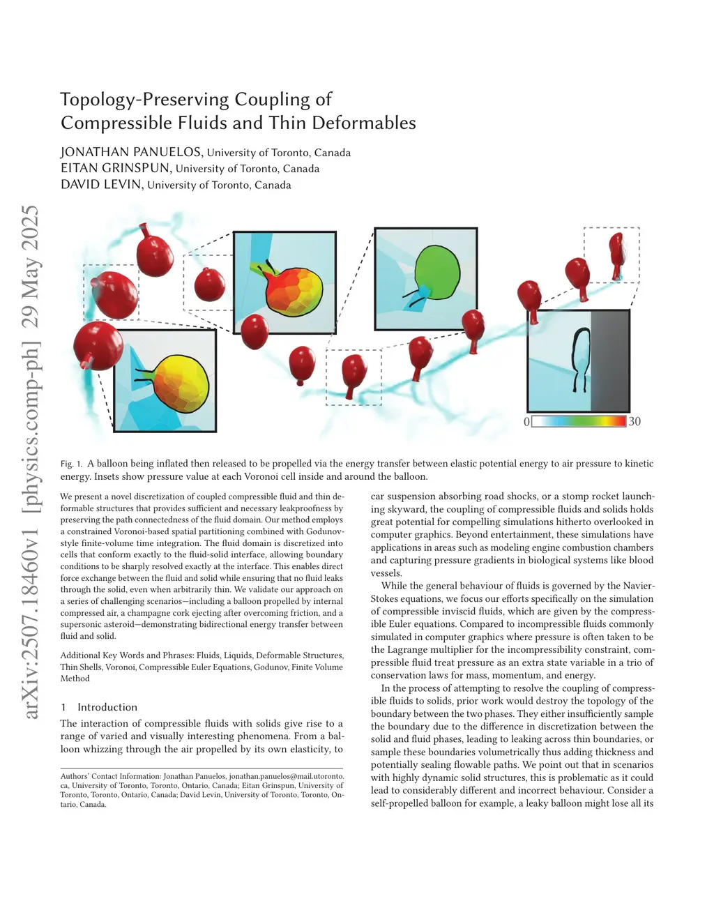 We present a novel discretization of coupled compressible fluid and thin deformable structures that provides sufficient and necessary leakproofness by preserving the path connectedness of the fluid domain. Our method employs a constrained Voronoi-based spatial partitioning combined with Godunov-style finite-volume time integration. The fluid domain is discretized into cells that conform exactly to the fluid-solid interface, allowing boundary conditions to be sharply resolved exactly at the interface. This enables direct force exchange between the fluid and solid while ensuring that no fluid leaks through the solid, even when arbitrarily thin. We validate our approach on a series of challenging scenarios -- including a balloon propelled by internal compressed air, a champagne cork ejecting after overcoming friction, and a supersonic asteroid -- demonstrating bidirectional energy transfer between fluid and solid.