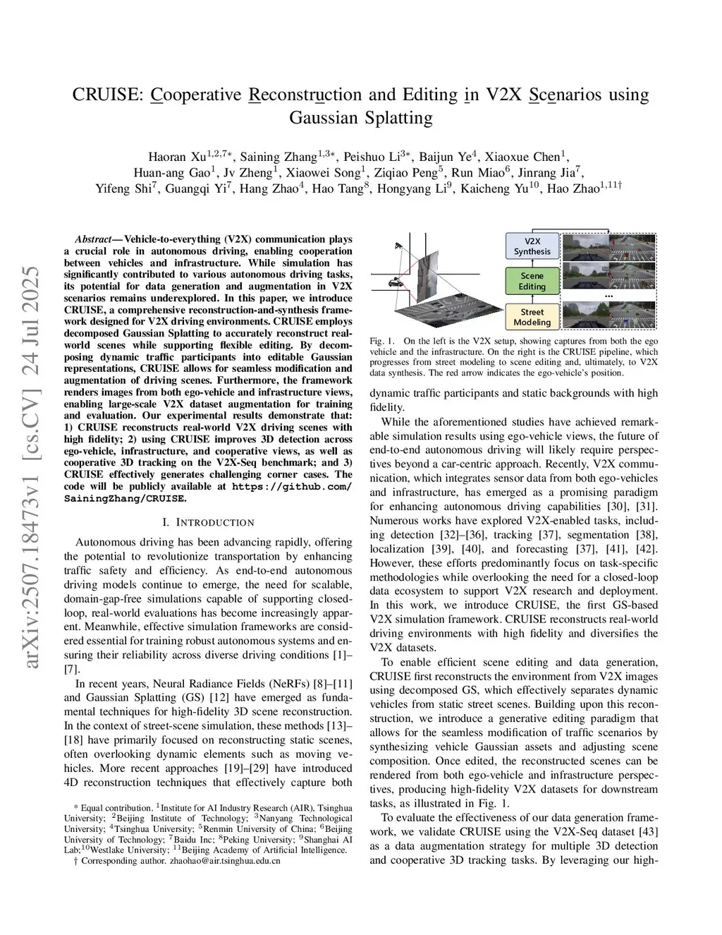 CRUISE: Cooperative Reconstruction and Editing in V2X Scenarios using Gaussian Splatting