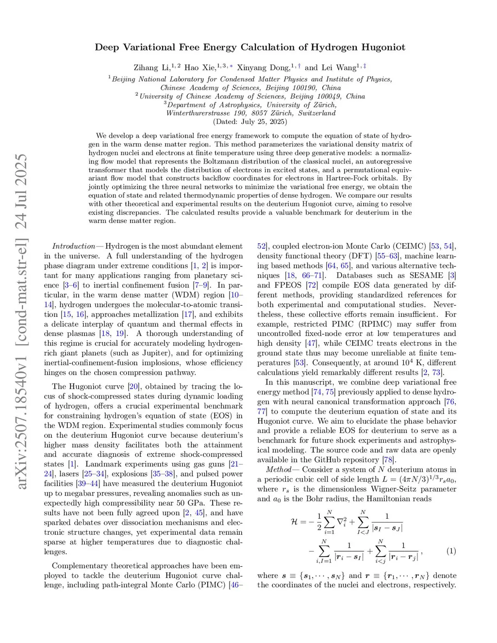 Deep Variational Free Energy Calculation of Hydrogen Hugoniot