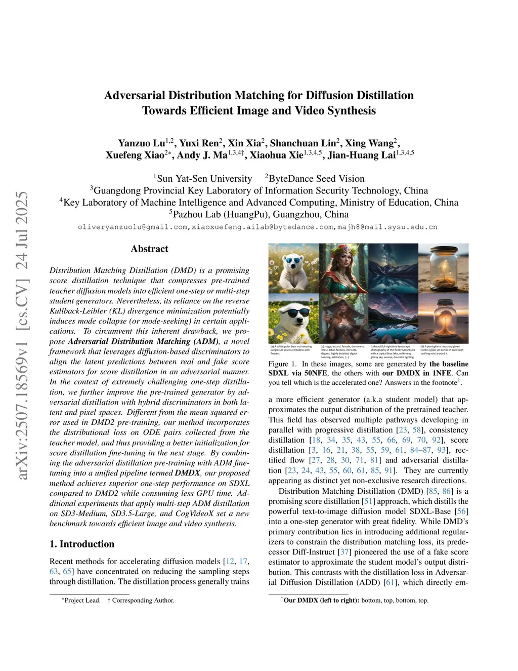 Adversarial Distribution Matching for Diffusion Distillation Towards Efficient Image and Video Synthesis