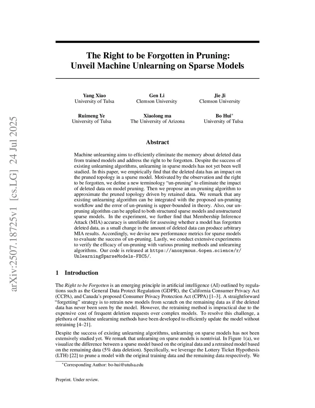 The Right to be Forgotten in Pruning: Unveil Machine Unlearning on Sparse Models