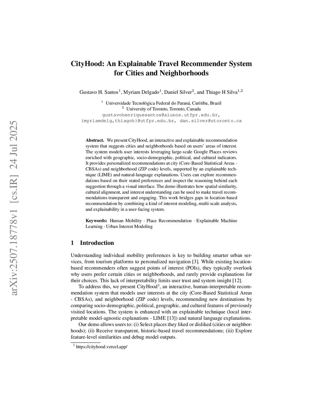 CityHood: An Explainable Travel Recommender System for Cities and Neighborhoods