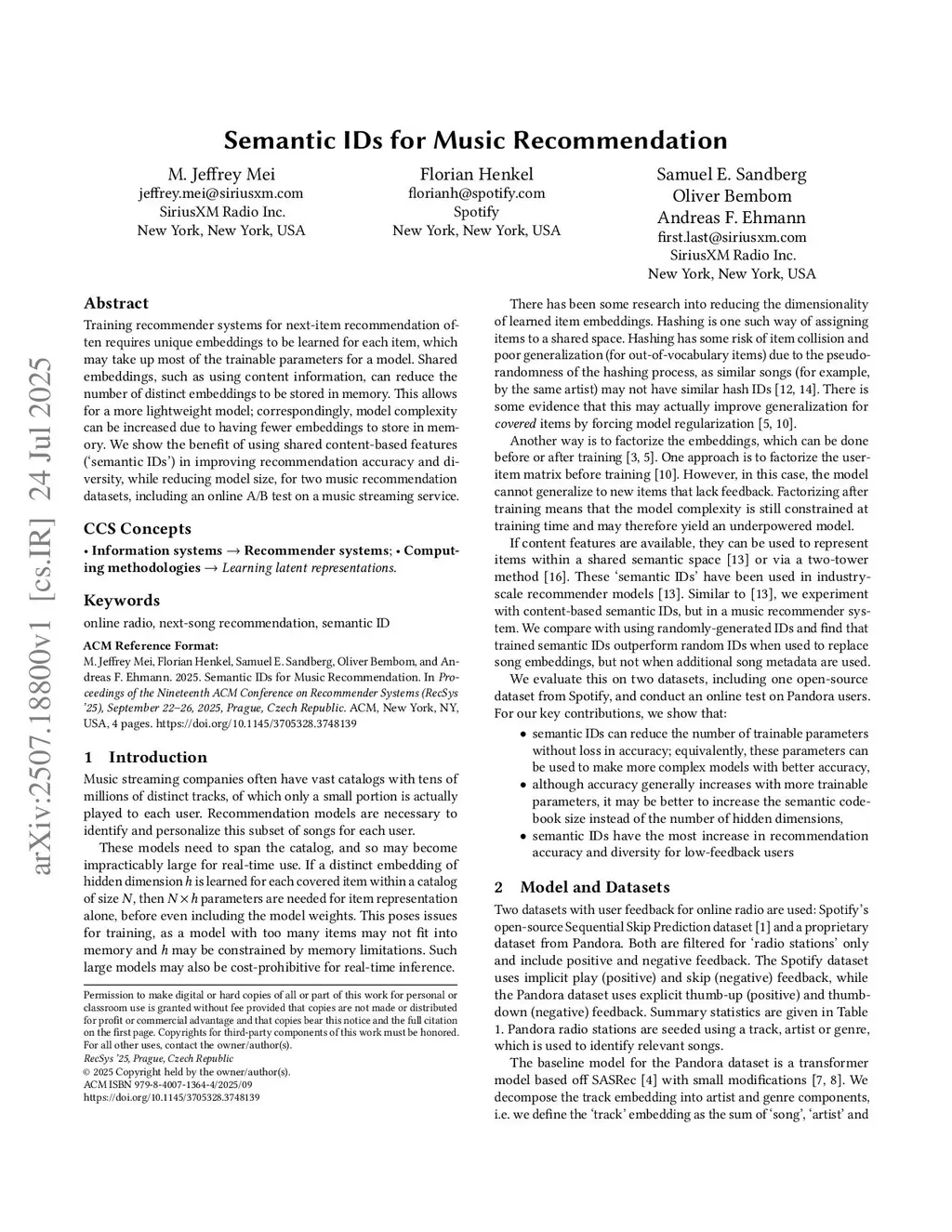 ACM Conference on Recommender Systems (RecSys), 2025