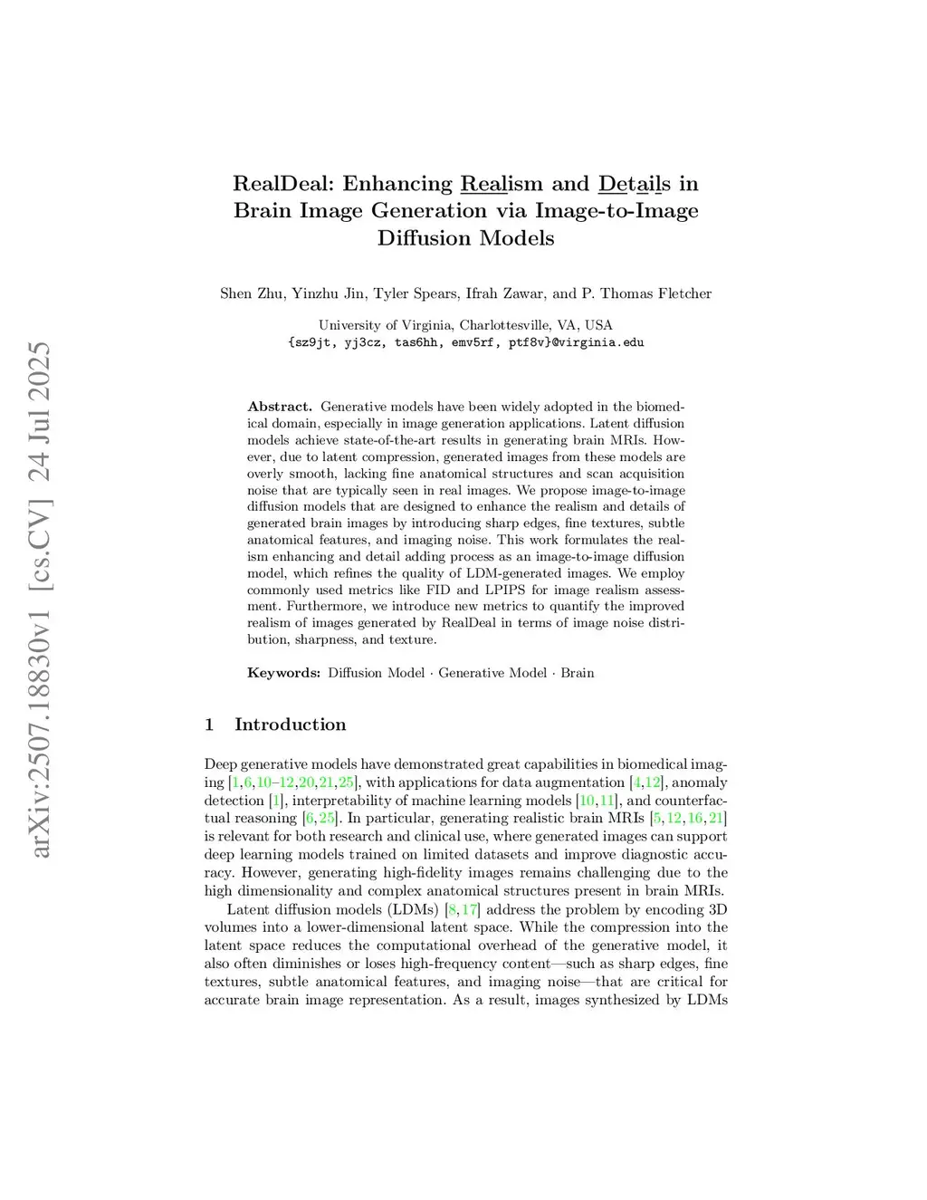 We propose image-to-image diffusion models that are designed to enhance the realism and details of generated brain images by introducing sharp edges, fine textures, subtle anatomical features, and imaging noise. Generative models have been widely adopted in the biomedical domain, especially in image generation applications. Latent diffusion models achieve state-of-the-art results in generating brain MRIs. However, due to latent compression, generated images from these models are overly smooth, lacking fine anatomical structures and scan acquisition noise that are typically seen in real images. This work formulates the realism enhancing and detail adding process as image-to-image diffusion models, which refines the quality of LDM-generated images. We employ commonly used metrics like FID and LPIPS for image realism assessment. Furthermore, we introduce new metrics to demonstrate the realism of images generated by RealDeal in terms of image noise distribution, sharpness, and texture.