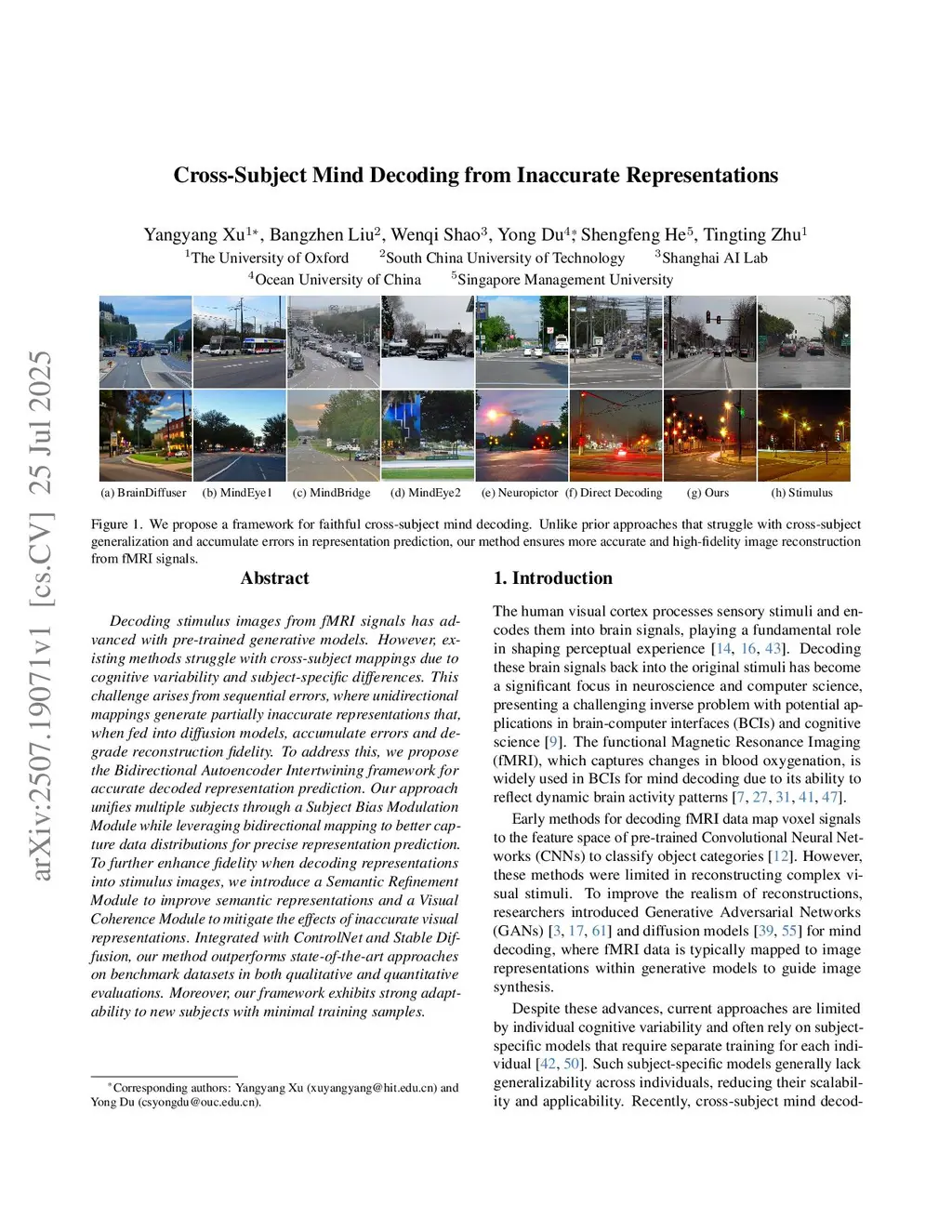 Cross-Subject Mind Decoding from Inaccurate Representations