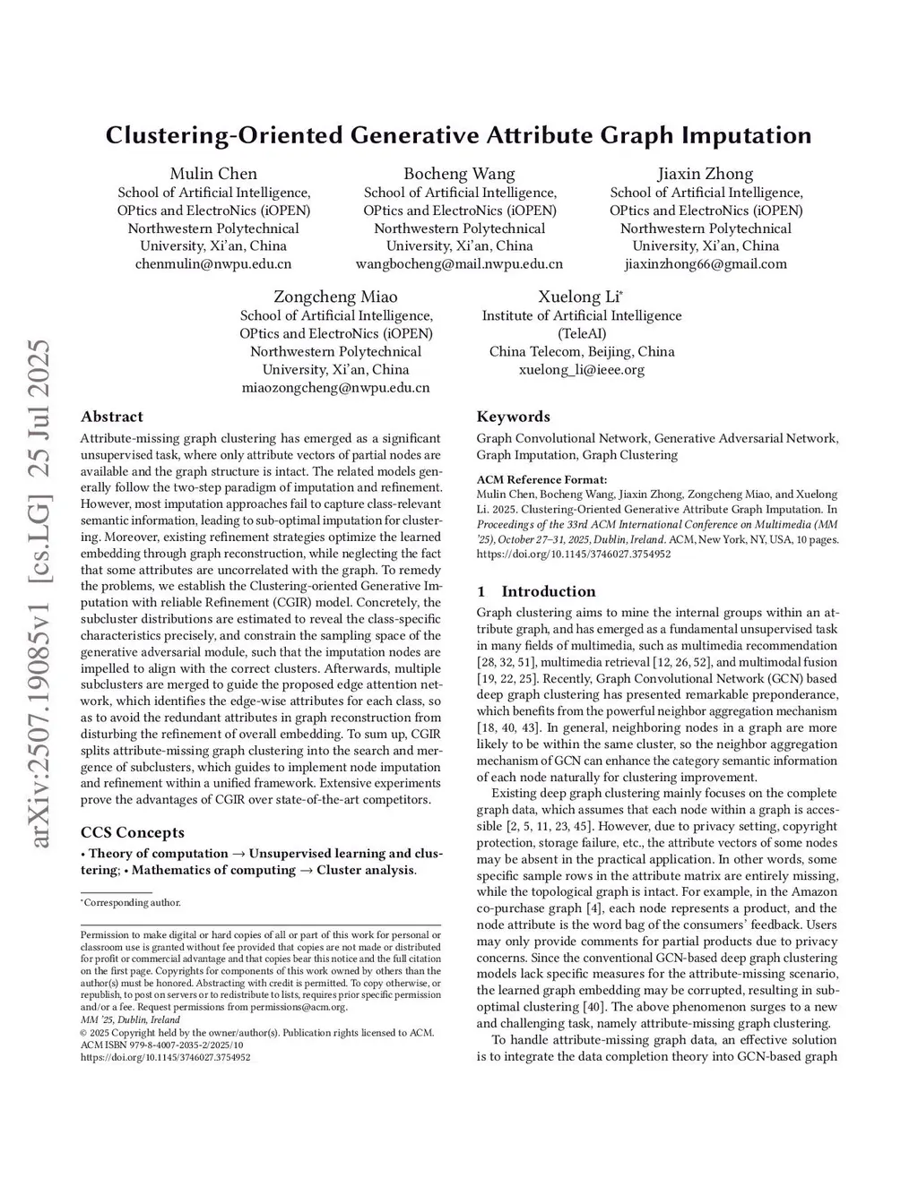 Clustering-Oriented Generative Attribute Graph Imputation