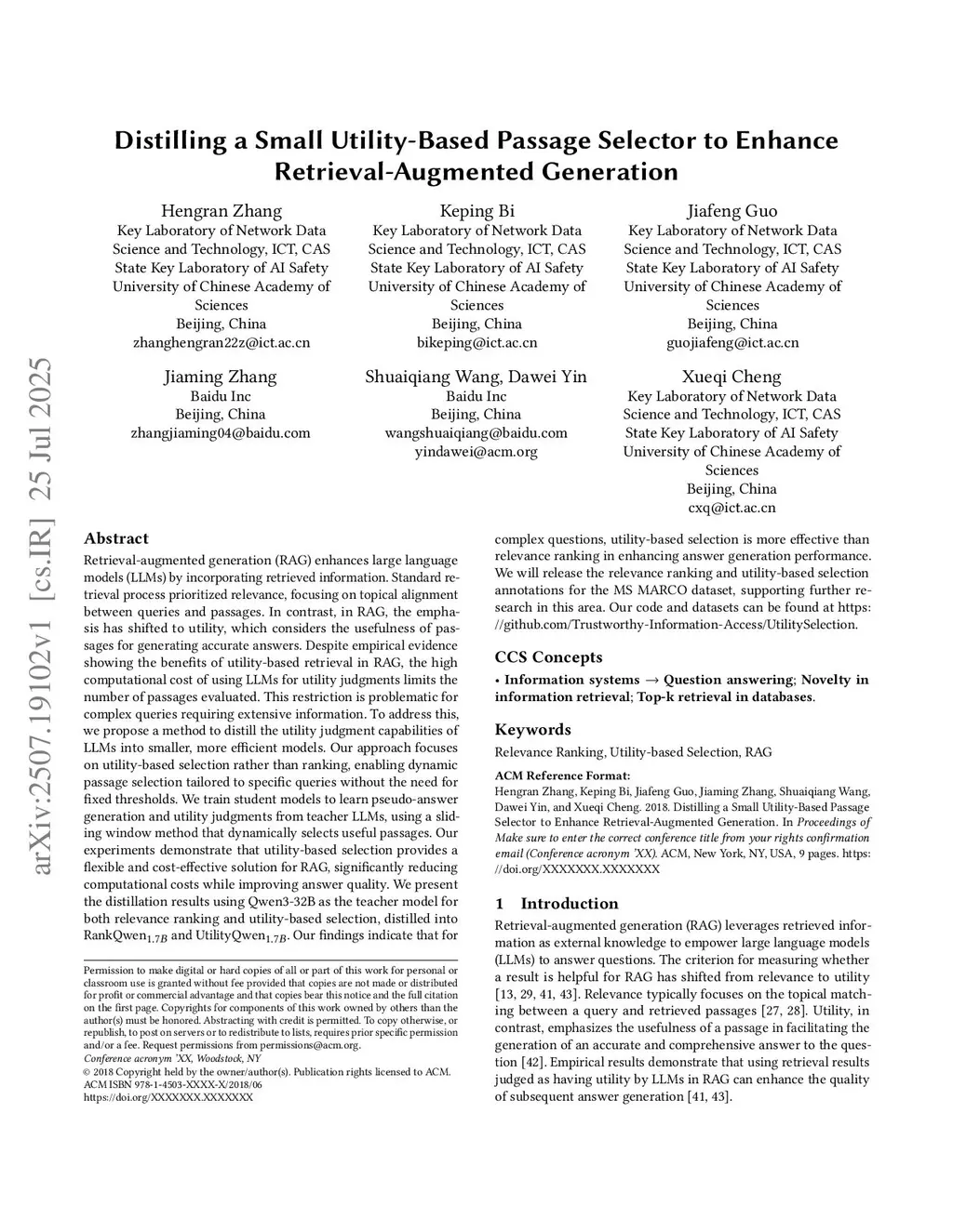 Distilling a Small Utility-Based Passage Selector to Enhance Retrieval-Augmented Generation