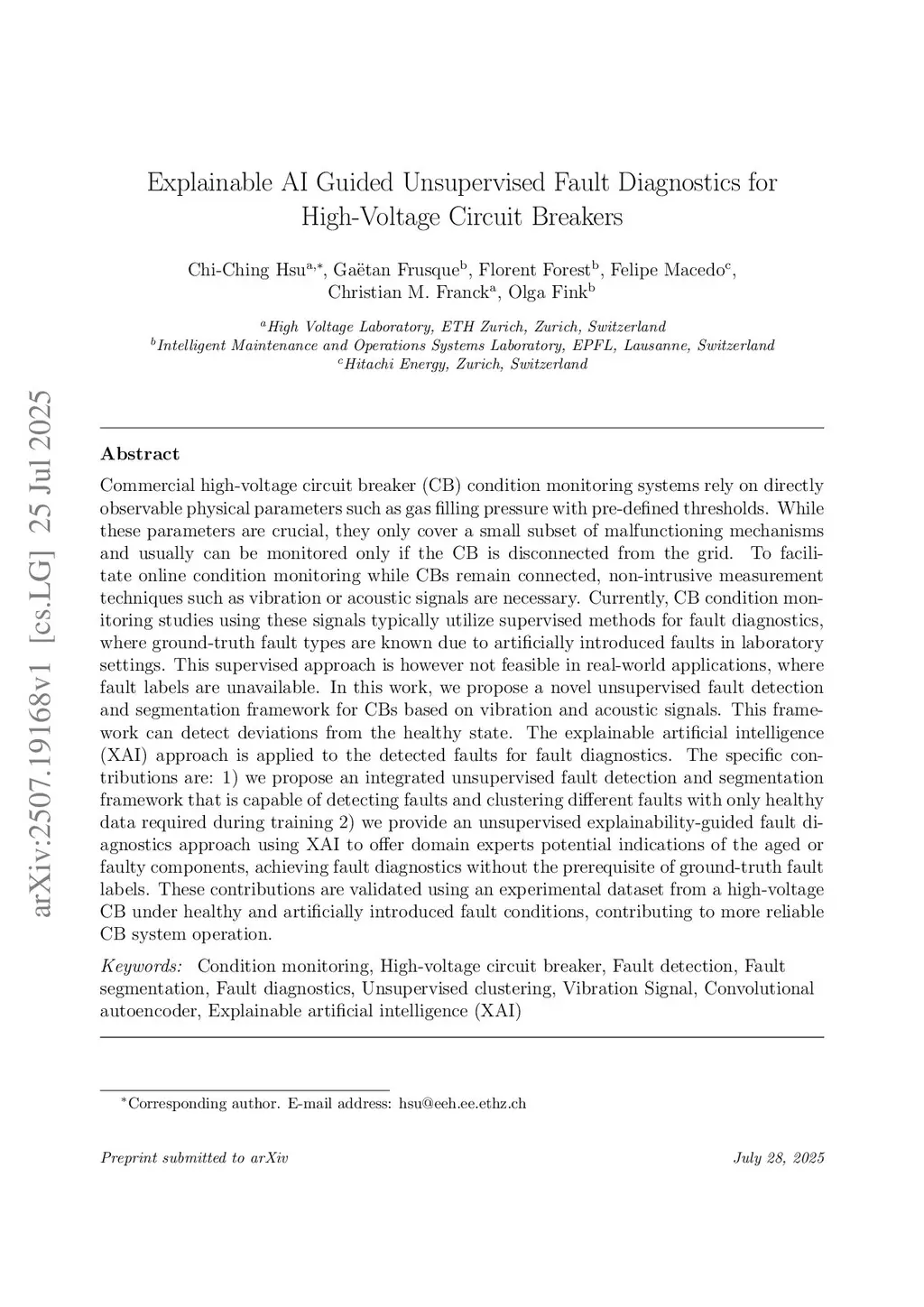 Explainable AI guided unsupervised fault diagnostics for high-voltage circuit breakers