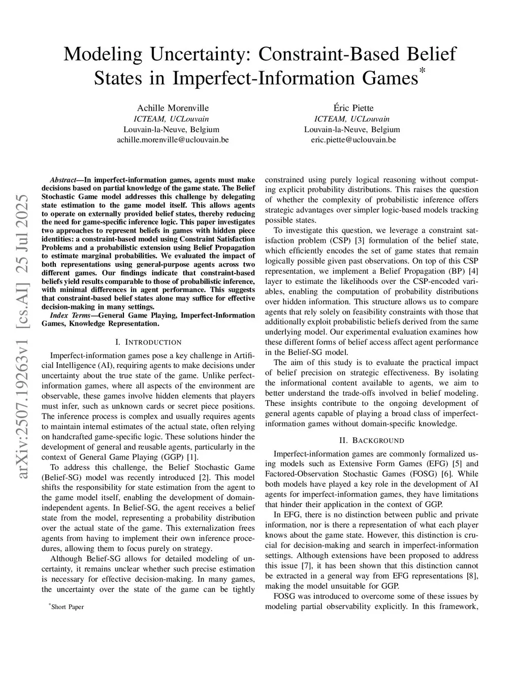 Modeling Uncertainty: Constraint-Based Belief States in Imperfect-Information Games
