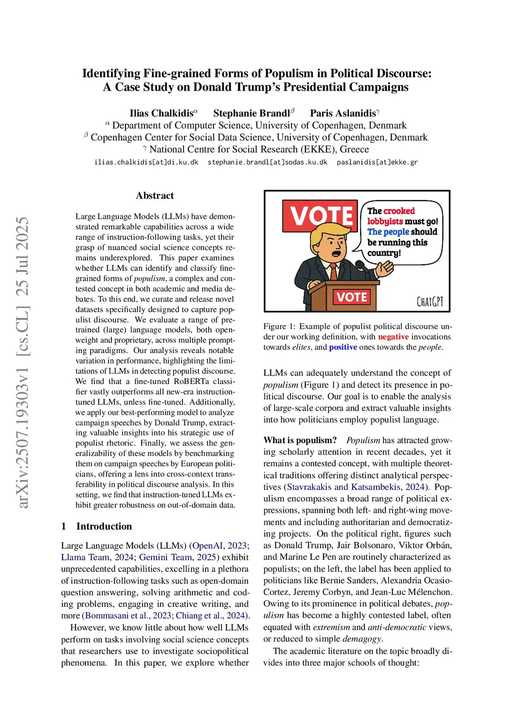 Large Language Models (LLMs) have demonstrated remarkable capabilities across a wide range of instruction-following tasks, yet their grasp of nuanced social science concepts remains underexplored. This paper examines whether LLMs can identify and classify fine-grained forms of populism, a complex and contested concept in both academic and media debates. To this end, we curate and release novel datasets specifically designed to capture populist discourse. We evaluate a range of pre-trained (large) language models, both open-weight and proprietary, across multiple prompting paradigms. Our analysis reveals notable variation in performance, highlighting the limitations of LLMs in detecting populist discourse. We find that a fine-tuned RoBERTa classifier vastly outperforms all new-era instruction-tuned LLMs, unless fine-tuned. Additionally, we apply our best-performing model to analyze campaign speeches by Donald Trump, extracting valuable insights into his strategic use of populist rhetoric. Finally, we assess the generalizability of these models by benchmarking them on campaign speeches by European politicians, offering a lens into cross-context transferability in political discourse analysis. In this setting, we find that instruction-tuned LLMs exhibit greater robustness on out-of-domain data.