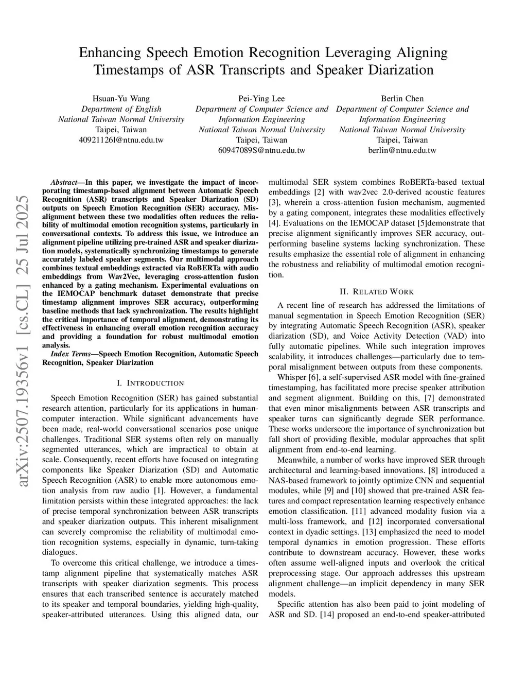 Enhancing Speech Emotion Recognition Leveraging Aligning Timestamps of ASR Transcripts and Speaker Diarization