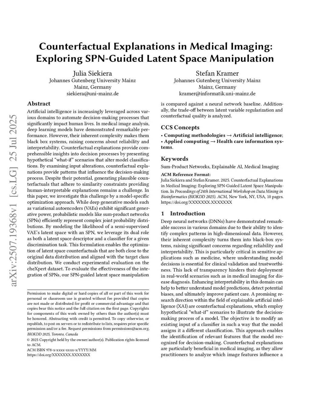 Counterfactual Explanations in Medical Imaging: Exploring SPN-Guided Latent Space Manipulation