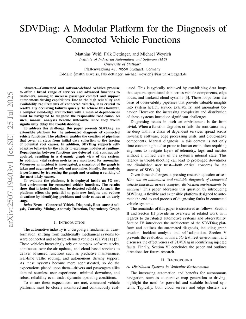 SDVDiag: A Modular Platform for the Diagnosis of Connected Vehicle Functions