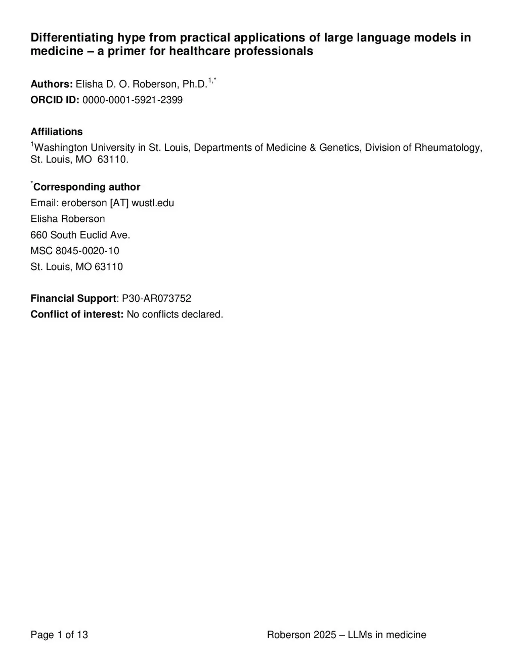 Differentiating hype from practical applications of large language models in medicine - a primer for healthcare professionals