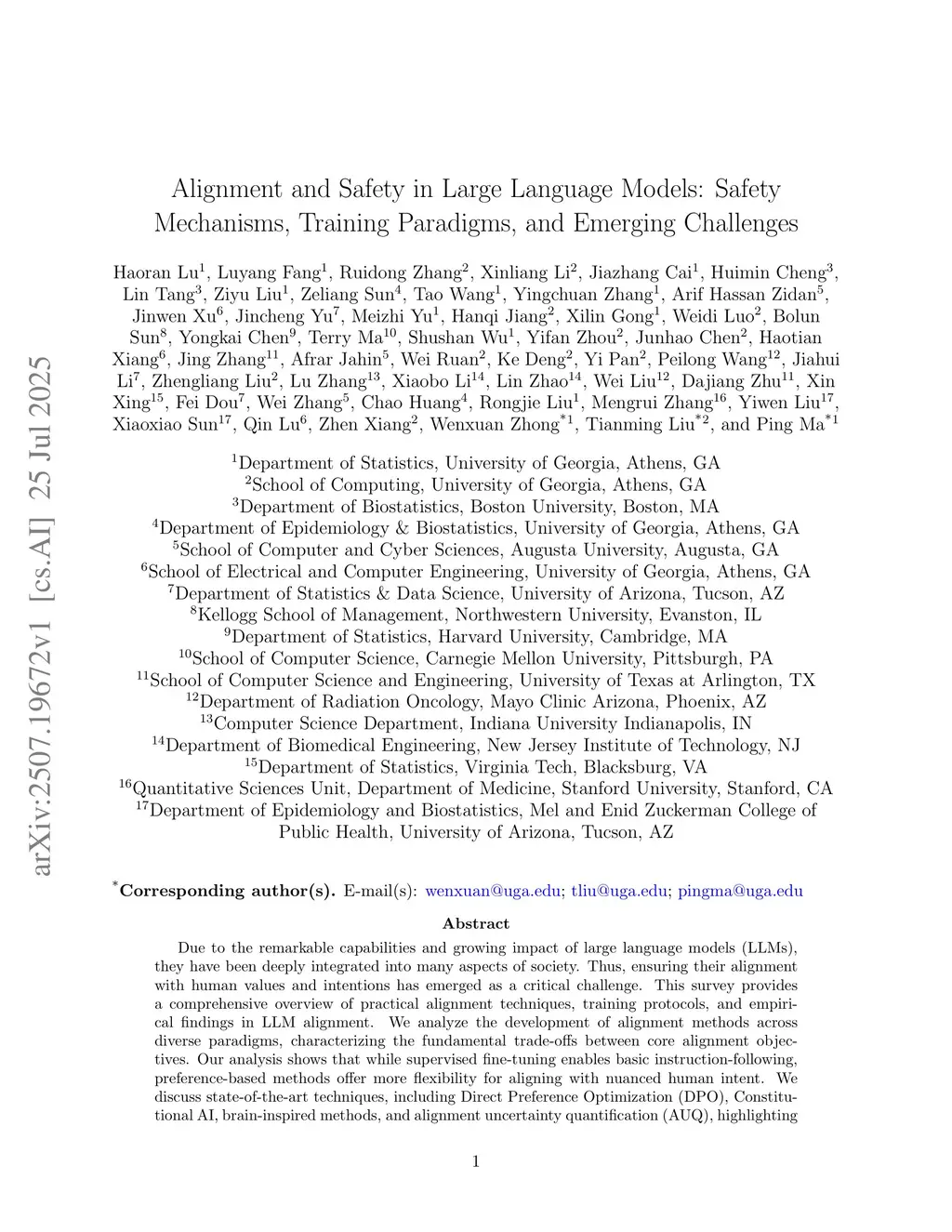 Alignment and Safety in Large Language Models: Safety Mechanisms, Training Paradigms, and Emerging Challenges