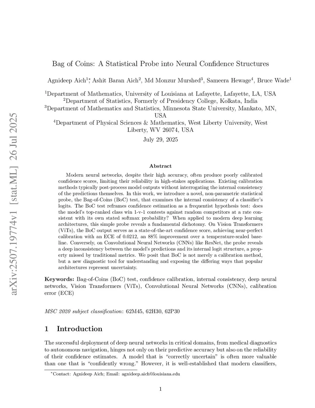 Bag of Coins: A Statistical Probe into Neural Confidence Structures
