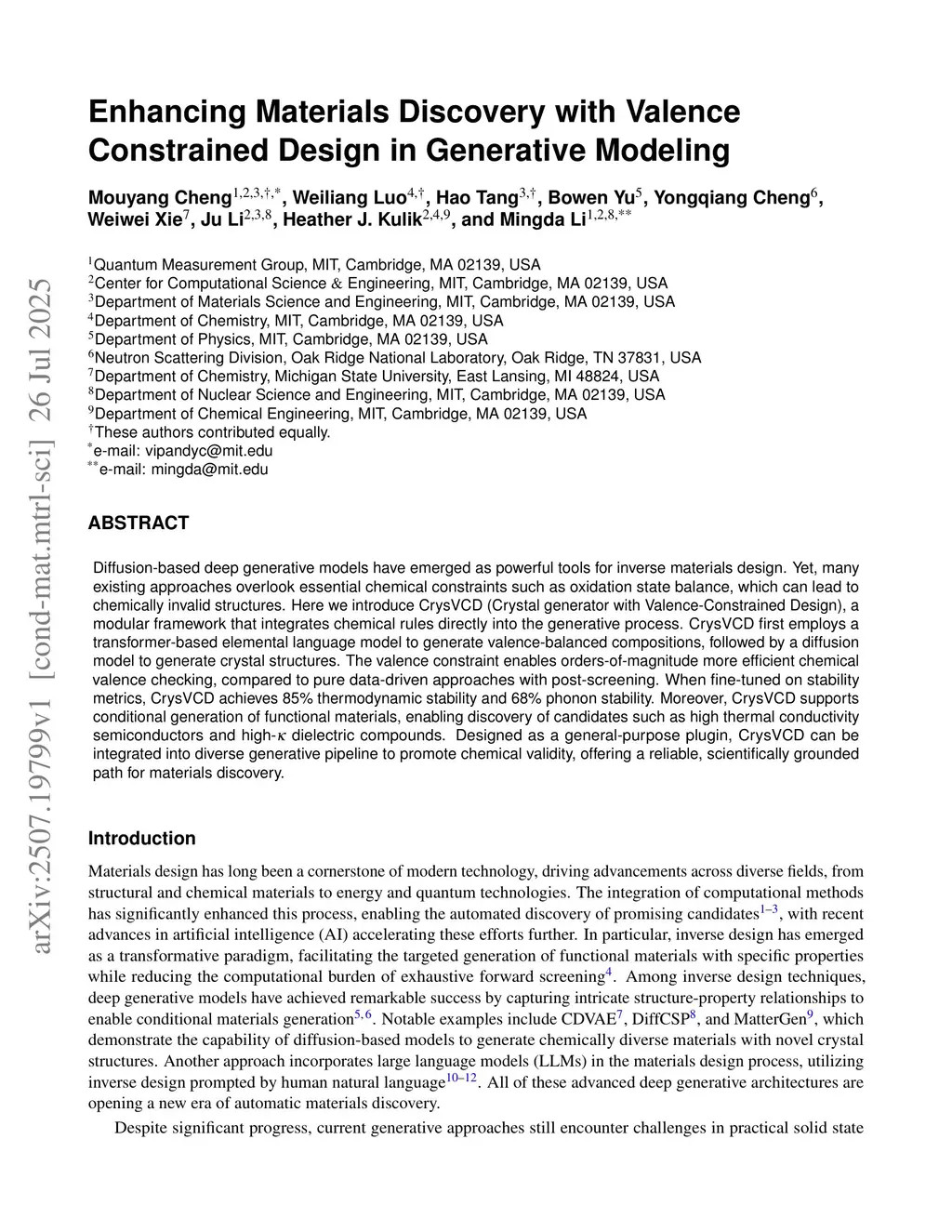 Diffusion-based deep generative models have emerged as powerful tools for inverse materials design. Yet, many existing approaches overlook essential chemical constraints such as oxidation state balance, which can lead to chemically invalid structures. Here we introduce CrysVCD (Crystal generator with Valence-Constrained Design), a modular framework that integrates chemical rules directly into the generative process. CrysVCD first employs a transformer-based elemental language model to generate valence-balanced compositions, followed by a diffusion model to generate crystal structures. The valence constraint enables orders-of-magnitude more efficient chemical valence checking, compared to pure data-driven approaches with post-screening. When fine-tuned on stability metrics, CrysVCD achieves 85% thermodynamic stability and 68% phonon stability. Moreover, CrysVCD supports conditional generation of functional materials, enabling discovery of candidates such as high thermal conductivity semiconductors and high- dielectric compounds. Designed as a general-purpose plugin, CrysVCD can be integrated into diverse generative pipeline to promote chemical validity, offering a reliable, scientifically grounded path for materials discovery.