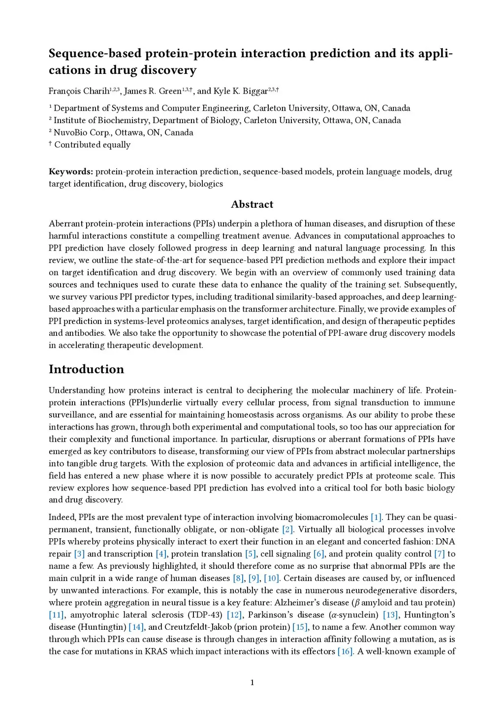 Aberrant protein-protein interactions (PPIs) underpin a plethora of human diseases, and disruption of these harmful interactions constitute a compelling treatment avenue. Advances in computational approaches to PPI prediction have closely followed progress in deep learning and natural language processing. In this review, we outline the state-of the-art for sequence-based PPI prediction methods and explore their impact on target identification and drug discovery. We begin with an overview of commonly used training data sources and techniques used to curate these data to enhance the quality of the training set. Subsequently, we survey various PPI predictor types, including traditional similarity-based approaches, and deep learning-based approaches with a particular emphasis on the transformer architecture. Finally, we provide examples of PPI prediction in systems-level proteomics analyses, target identification, and design of therapeutic peptides and antibodies. We also take the opportunity to showcase the potential of PPI-aware drug discovery models in accelerating therapeutic development.