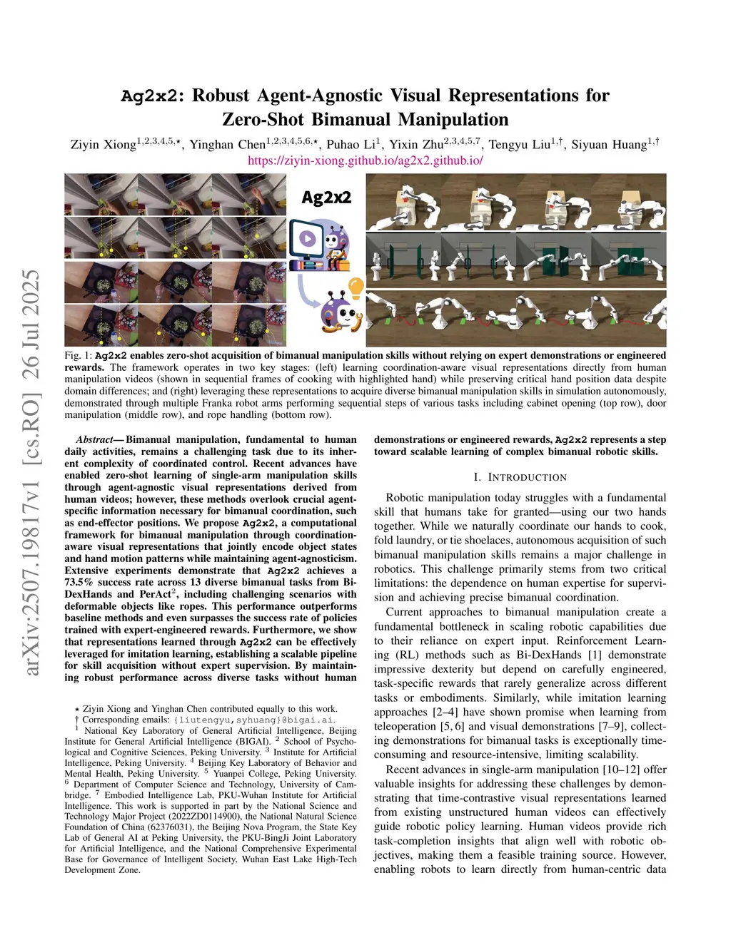 Ag2x2: Robust Agent-Agnostic Visual Representations for Zero-Shot Bimanual Manipulation